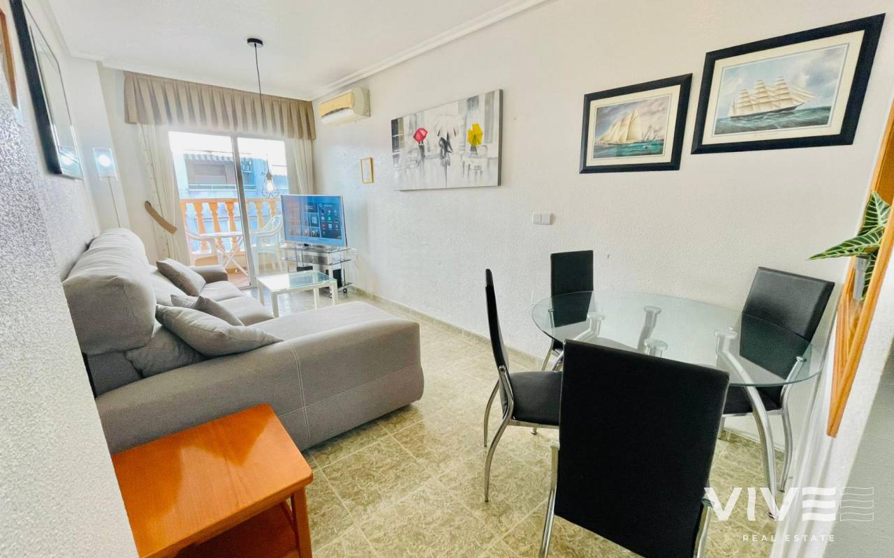 Apartamento en Venta en Torrevieja Disfruta del Encanto Mediterráneo Este encantador apartamento en venta en Torrevieja es una oportunidad única para vivir la esencia mediterránea. Construido en 2004 y mantenido en excelente estado, este hogar de 68m² te ofrece la posibilidad de entrar y vivir tu nueva vida costera.La propiedad cuenta con 2 luminosos dormitorios que brindan comodidad y tranquilidad. El baño, junto con la acogedora cocina francesa, agrega un toque de estilo y funcionalidad al espacio de vida, ideal para las rutinas diarias y para recibir a tus seres queridos.La orientación noroeste proporciona una agradable iluminación natural sin el calor directo del sol, mientras que la terraza de 5m² es el lugar perfecto para disfrutar de las brisas marinas y relajarse al aire libre.Este hogar incluye plaza de garaje y trastero, ofreciendo practicidad y espacio adicional. La propiedad viene completamente amueblada, incluyendo electrodomésticos, para que puedas mudarte sin preocupaciones. El edificio tiene un enorme solárium con vistas al mar muy soleado. Situado a solo 350 metros de la playa de Acequion, disfrutarás de un acceso fácil al mar y a todos los servicios cercanos, como comercios, restaurantes, supermercados y farmacias.La vivienda tiene licencia turística.Vive la experiencia del estilo de vida mediterráneo en este acogedor apartamento. ¡Contáctanos hoy para hacer de este lugar tu nuevo hogar! IBI 192,25 €COMUNIDAD 471 € ANUALES
