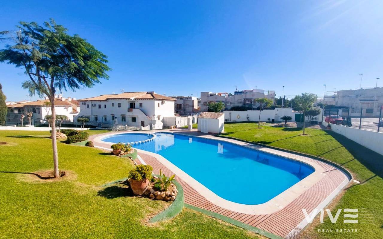 Lago Jardin 2 adosado el cual consta de 2 dormitorios dobles, uno de ellos con salida a una terraza con doble acristalamiento, 1 baño y 1 aseo (en planta baja), salón-comedor, cocina independiente, y zona de lavandería. Además, tiene 2 patios amplios, en la parte delantera y trasera de la casa, con orientación sur y norte, que permiten disfrutar del buen clima todo el año y en cualquier momento del día. El patio delantero da a la zona comunitaria de aparcamiento y se puede dejar el coche justo delante de la casa. El patio trasera da a una de las zonas ajardinadas de la urbanización, con una bonita piscina comunitaria y varios jardines.