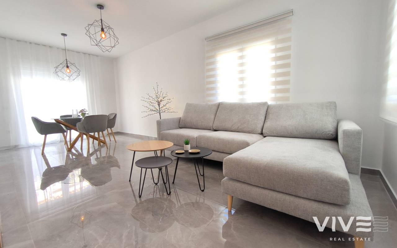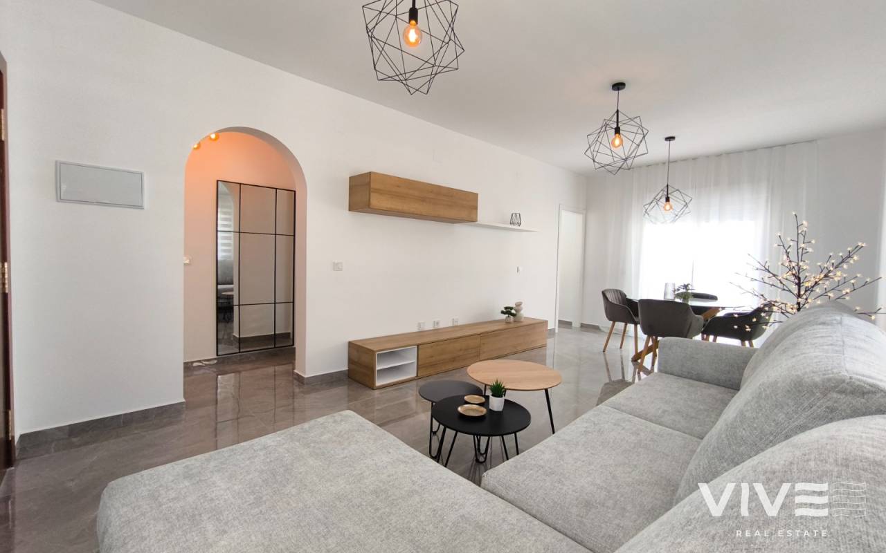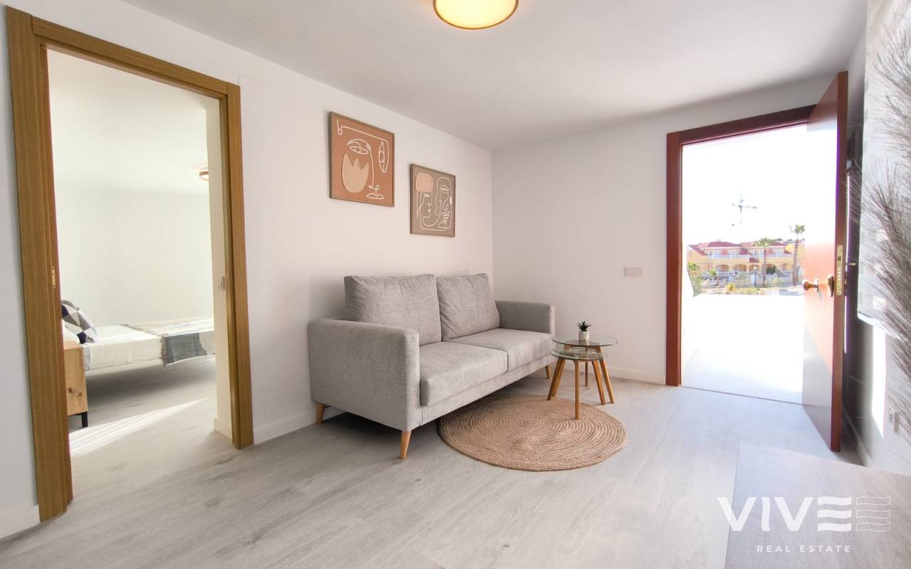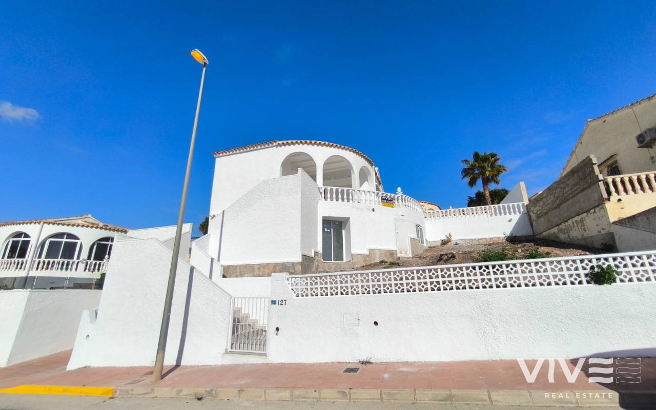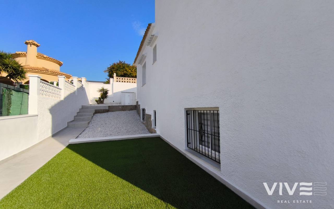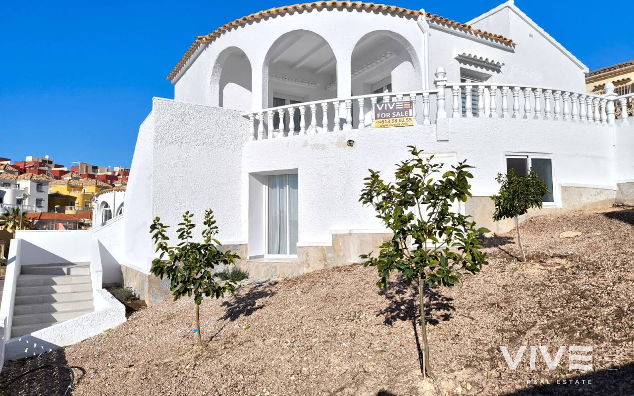 Descubre esta increíble villa en la exclusiva urbanización "El Presidente" en Villamartín, Orihuela Costa, ideal para quienes buscan una segunda residencia o una inversión en una de las zonas más atractivas de la Costa Blanca. La propiedad se encuentra en una parcela de 400 m² y cuenta con una superficie construida de 171 m², distribuida en dos plantas, cada una completamente independiente y garaje cerrado. En cada planta, disfrutarás de 2 dormitorios amplios, 1 baño moderno y cocina. La planta principal destaca por un gran salón con techos altos y grandes ventanas que inundan el espacio de luz natural y ofrecen acceso directo a la zona de piscina, perfecta para relajarse bajo el sol mediterráneo. La planta baja ofrece acceso a un hermoso jardín privado y la piscina, proporcionando un oasis de tranquilidad y privacidad. La villa está en proceso de una completa reforma, y las imágenes mostradas son infografías que reflejan cómo se verá la propiedad al finalizar la renovación. Este es el momento perfecto para adquirir una villa moderna y reformada en una ubicación privilegiada. Ubicada en Villamartín, esta propiedad se encuentra cerca de prestigiosos campos de golf como Villamartín Golf y Las Colinas Golf, ideales para los amantes del golf. Además, está a poca distancia de algunas de las mejores playas de la Costa Blanca, como La Zenia, Campoamor y Mil Palmeras, todas con un encanto único. La zona ofrece una gran variedad de opciones de ocio, con centros comerciales como Zenia Boulevard y la Fuente, y está a solo 15 km de la vibrante ciudad de Torrevieja. Esta villa es perfecta para los que buscan una residencia en una zona con un clima privilegiado y con una amplia oferta de actividades y servicios. No dejes pasar esta oportunidad de tener tu propia villa en el corazón de Orihuela Costa.