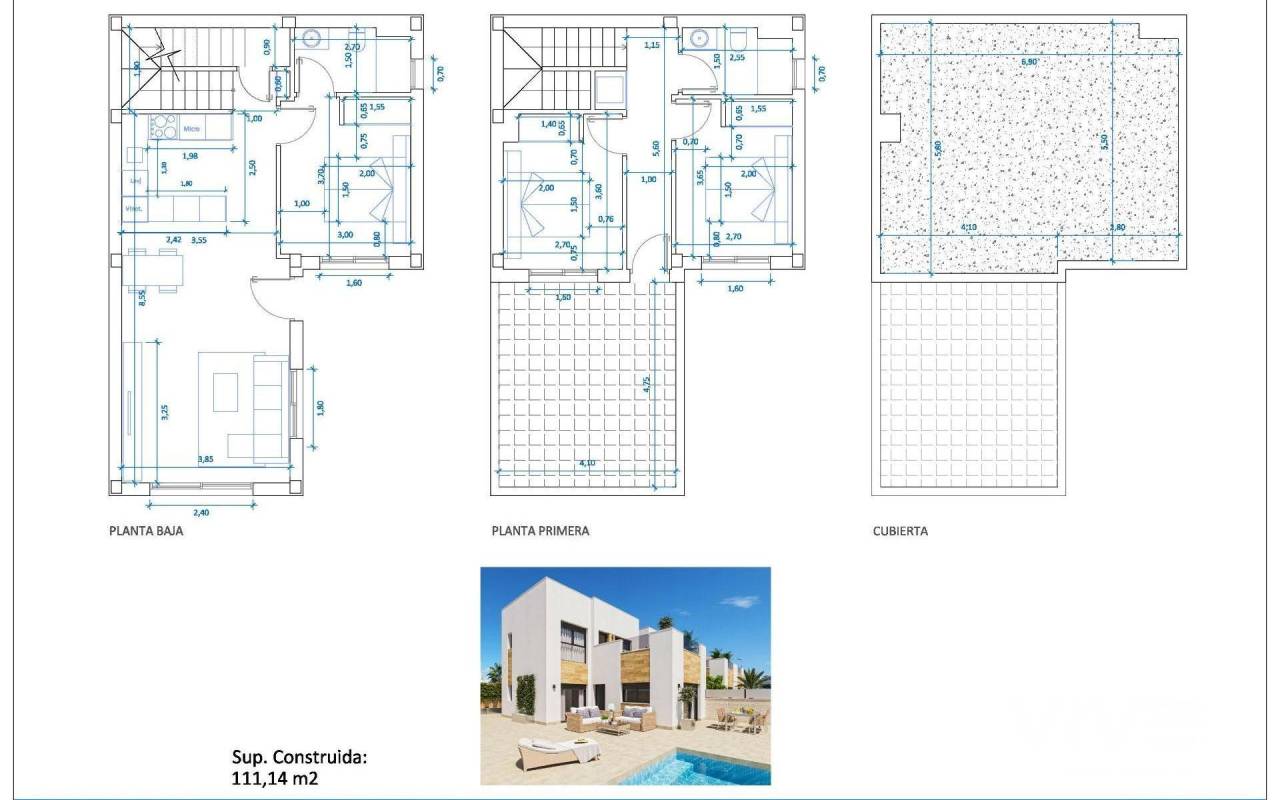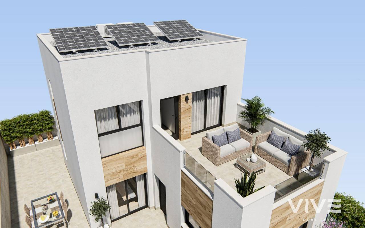 Villas modernas de nueva construcción en Benijófar con piscina privada Una ubicación privilegiada en Benijófar Enclavado en el encantador pueblo de Benijófar, este nuevo complejo residencial ofrece la mezcla perfecta de diseño moderno y un tranquilo estilo de vida mediterráneo. Situado a sólo 7 km de las hermosas playas de Guardamar del Segura, Benijófar es un pueblo tranquilo rodeado de naturaleza y servicios esenciales. Por su proximidad al río Segura, sus pintorescos paisajes y su vibrante comunidad, es un destino ideal para quienes buscan un estilo de vida sereno pero conectado. Amplias villas con un cuidado diseño Esta promoción cuenta con cuatro modernas villas, todas ellas cuidadosamente diseñadas para ofrecer comodidad y funcionalidad. Estas casas de dos plantas ofrecen: 3 dormitorios y 2,5 baños: Un dormitorio y un baño con aseo de invitados en la planta baja, y dos dormitorios adicionales con un baño compartido y una gran terraza en la primera planta. Espacios de vida de concepto abierto: Un amplio salón con una cocina abierta contemporánea, perfectamente conectada con el jardín y la piscina privada a través de puertas correderas de cristal. Características y servicios de alta calidad Estas villas están construidas con los más altos estándares, con características de primera calidad que mejoran la comodidad y la sostenibilidad: Carpintería exterior de aluminio con rotura de puente térmico para un aislamiento óptimo. Persianas de aluminio motorizadas. Puerta de entrada reforzada para mayor seguridad. Baños con duchas acristaladas. Iluminación LED en todo el interior y exterior. Instalación completa de aire acondicionado y calefacción por conductos (Johnson o similar). Piscina privada con ducha. Placas solares fotovoltaicas de 1,5 kW de potencia para eficiencia energética. Sistema de ósmosis en la cocina para agua purificada. Ubicación conveniente y atracciones cercanas Benijófar está perfectamente situado con una excelente conectividad a los principales puntos de interés: Aeropuerto de Alicante: 30 km (aproximadamente 30 minutos en coche). Playas de Guardamar: 7 km (15 minutos en coche), con más de 11 km de arena blanca y aguas cristalinas. Campos de Golf: Varios campos de renombre en las inmediaciones, ideales para los amantes del golf. Parques Acuáticos: Opciones llenas de diversión en Rojales y Torrevieja, a pocos minutos. Servicios Locales: Supermercados, farmacias, bancos, restaurantes y un encantador parque natural a poca distancia. Su casa mediterránea de ensueño le espera Disfrute de la vida moderna en un entorno tranquilo con estas excepcionales villas en Benijófar. Perfectas para familias o como inversión, estas casas ofrecen todo lo necesario para un lujoso estilo de vida mediterráneo. Póngase en contacto con nosotros hoy mismo para concertar una visita o para obtener más información.