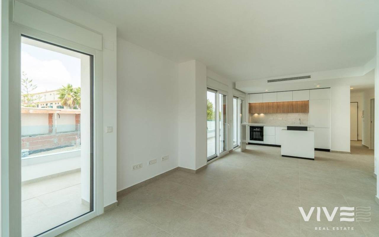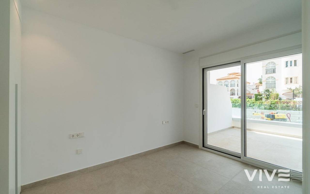 Apartamento Exclusivo en Planta Baja Frente a la Piscina – Obra Nueva en Playa Flamenca, Orihuela Costa. Te presentamos esta fantástica vivienda de obra nueva situada en una de las zonas más demandadas de Orihuela Costa, a tan solo 500 metros del mar. Este apartamento en planta baja destaca por su excelente ubicación dentro del residencial: justo frente a la piscina comunitaria, con dos terrazas privadas —delantera y trasera— ideales para disfrutar del sol durante todo el día.. . Detalles que Marcan la Diferencia:. 98,94 m2 construidos distribuidos en 3 dormitorios dobles y 2 baños completos y lavadero. . Amplia terraza principal de 43,83 m2, perfecta para tus momentos al aire libre.. . Cocina con muebles y electrodomésticos incluidos.. . Las persianas se suben con motor . . Modificada y mejorada: cuenta con aire acondicionado por conductos instalado y mejoras funcionales en la cocina, ademas de haber modificado los puntos de luz para una mejor iluminacion.. . Se entrega sin muebles, lo que te permite decorarla completamente a tu gusto.. . Ventajas de Vivir Aquí:. Obra nueva con acabados modernos y de alta calidad.. . Orientación sur, que proporciona gran luminosidad natural durante todo el día.. . Carpintería exterior en PVC con doble acristalamiento tipo Climalit.. . Garaje y trastero incluidos, para tu comodidad y seguridad.. . Acceso directo y cómodo al ser planta baja.. . Zona ajardinada y varias piscinas comunitarias para relajarte o disfrutar en familia.. . Ubicación Inmejorable:. Vivir en Playa Flamenca significa estar cerca de todo:. . A poca distancia de supermercados, restaurantes, colegios, centros de salud y transporte público.. . A minutos de Zenia Boulevard, campos de golf y múltiples opciones de ocio.. . En una urbanización segura y tranquila, perfecta como residencia habitual o segunda vivienda.. . Una Inversión Inteligente en la Costa Blanca. Ya sea que estés buscando una vivienda para tus vacaciones, para vivir todo el año o como inversión rentable, esta propiedad lo tiene todo: ubicación premium, características exclusivas y precio competitivo.. . ???? Contáctanos hoy mismo y agenda tu visita sin compromiso. Esta oportunidad no estará disponible por mucho tiempo.. .
