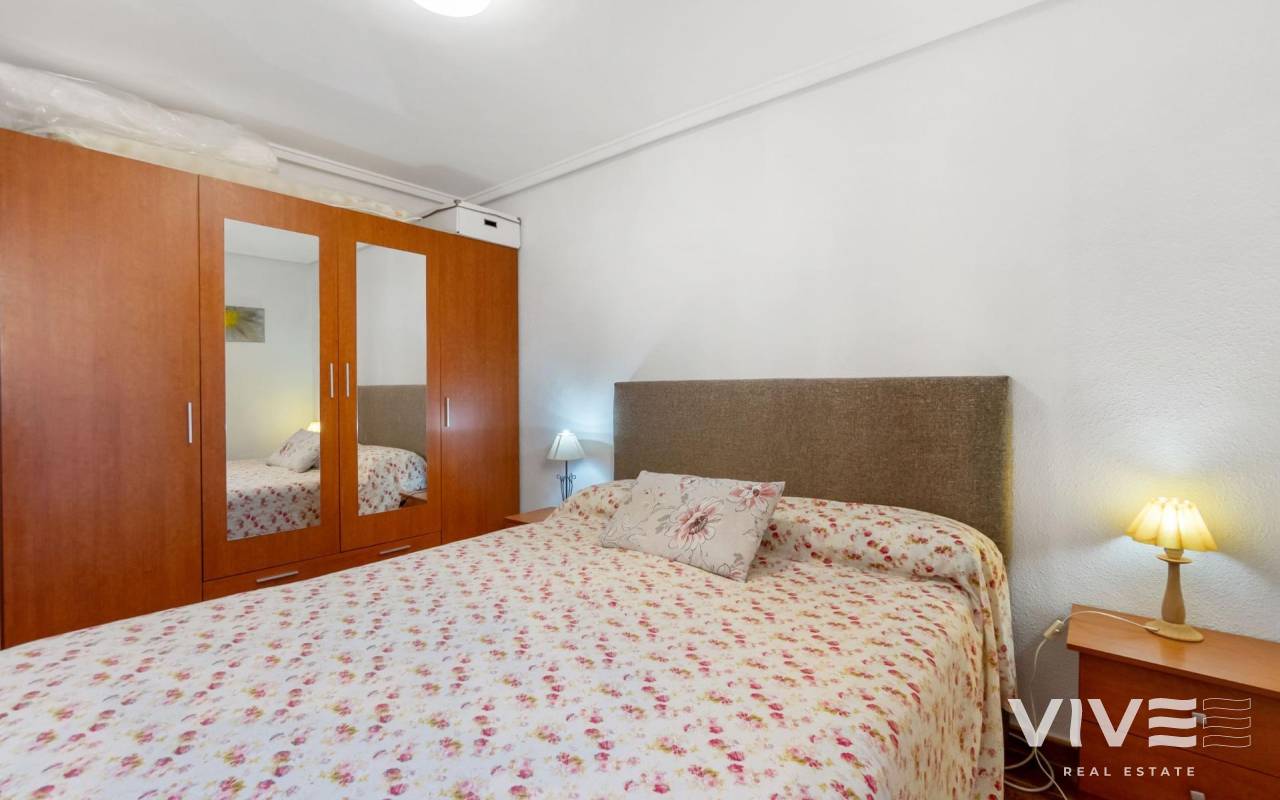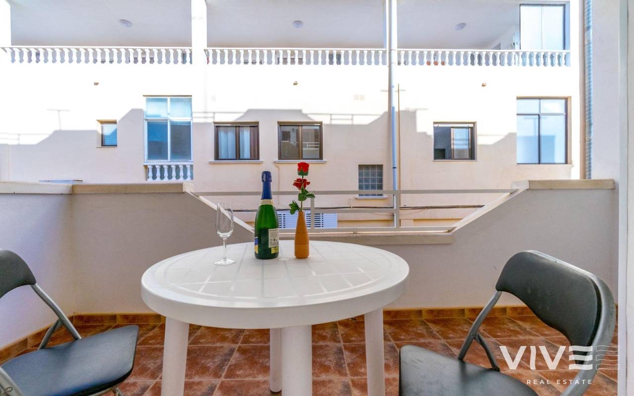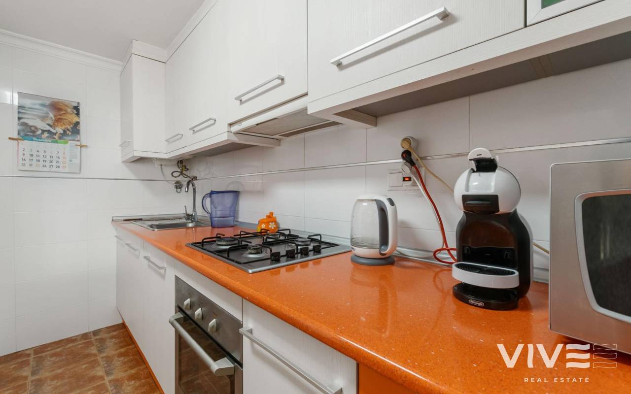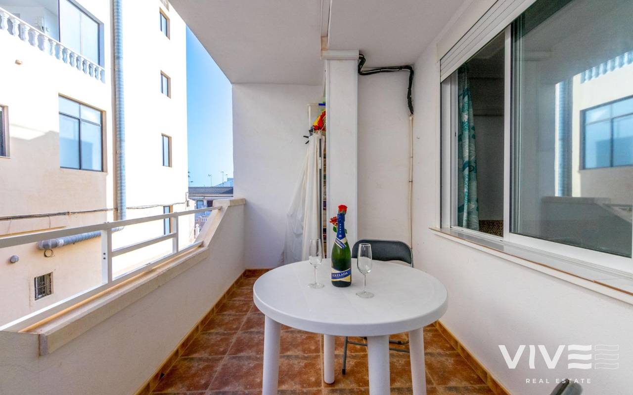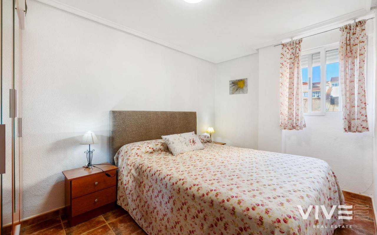 Apartamento en La Mata, en una ubicación perfecta, situado solo a 300m de la playa de la Mata. La vivienda en primera planta, con la superficie de 68m2, se distribuye en la siguiente manera: salón-comedor con acceso a la terraza de unos 8m2, amplia cocina americana totalmente equipada, tres dormitorios y un baño completo y amplio, con la bañera. Aire acondicionado instalado en el salón. Se vende amueblado. Solárium comunitario con vistas al mar. El edificio sin ascensor. Muy céntrico, con todos los servicios a pie.