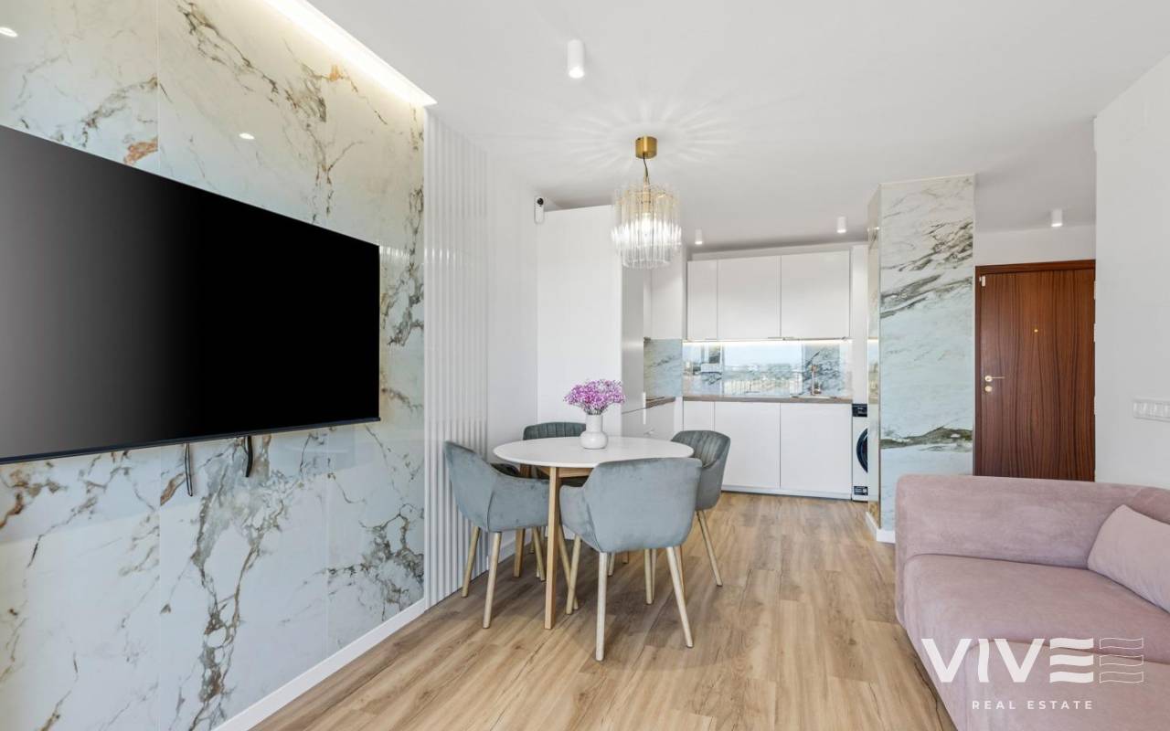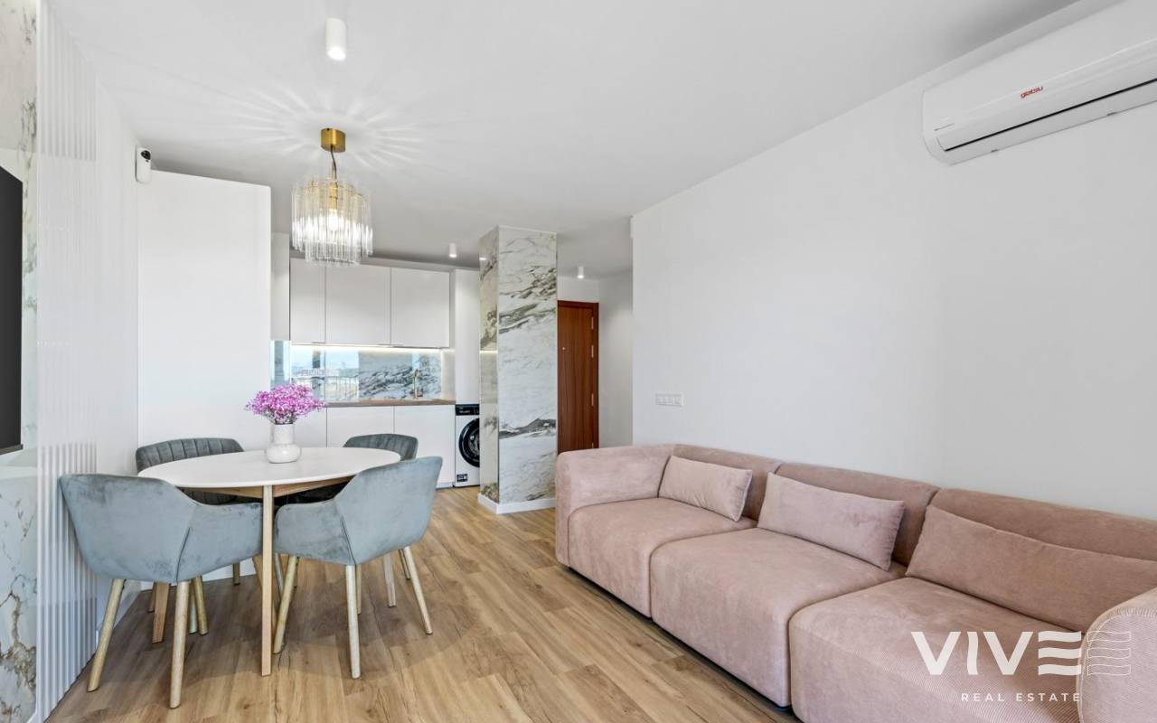 Apartamento totalmente renovado ubicado en unos de las áreas mas solicitadas, Punta Prima. Situado a tan solo 600 m de la playa, tiene magnificas vistas de la terraza, especialmente por la noche. Consta de 2 dormitorios y dos baños completos, cocina abierta al salón, totalmente equipada, aire acondicionado instalado, muebles a estrenar, ventanas insonorizadas con persianas eléctricas, iluminación ambiental. Diseña moderno, altas calidades de materiales. Renovación completa, incluyendo la fontanería y electricidad. Ideal para vacaciones o residir todo el año. Cerca de todos los servicios, supermercados, parada de bus, amplia elección de bares y restaurantes.