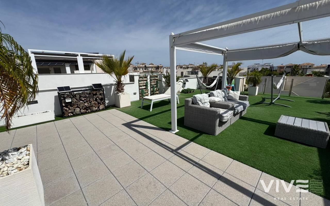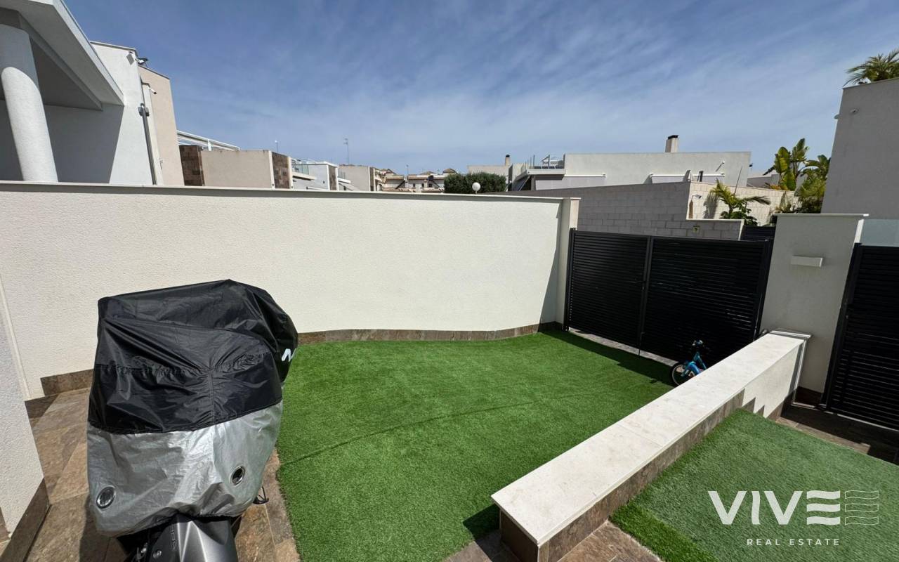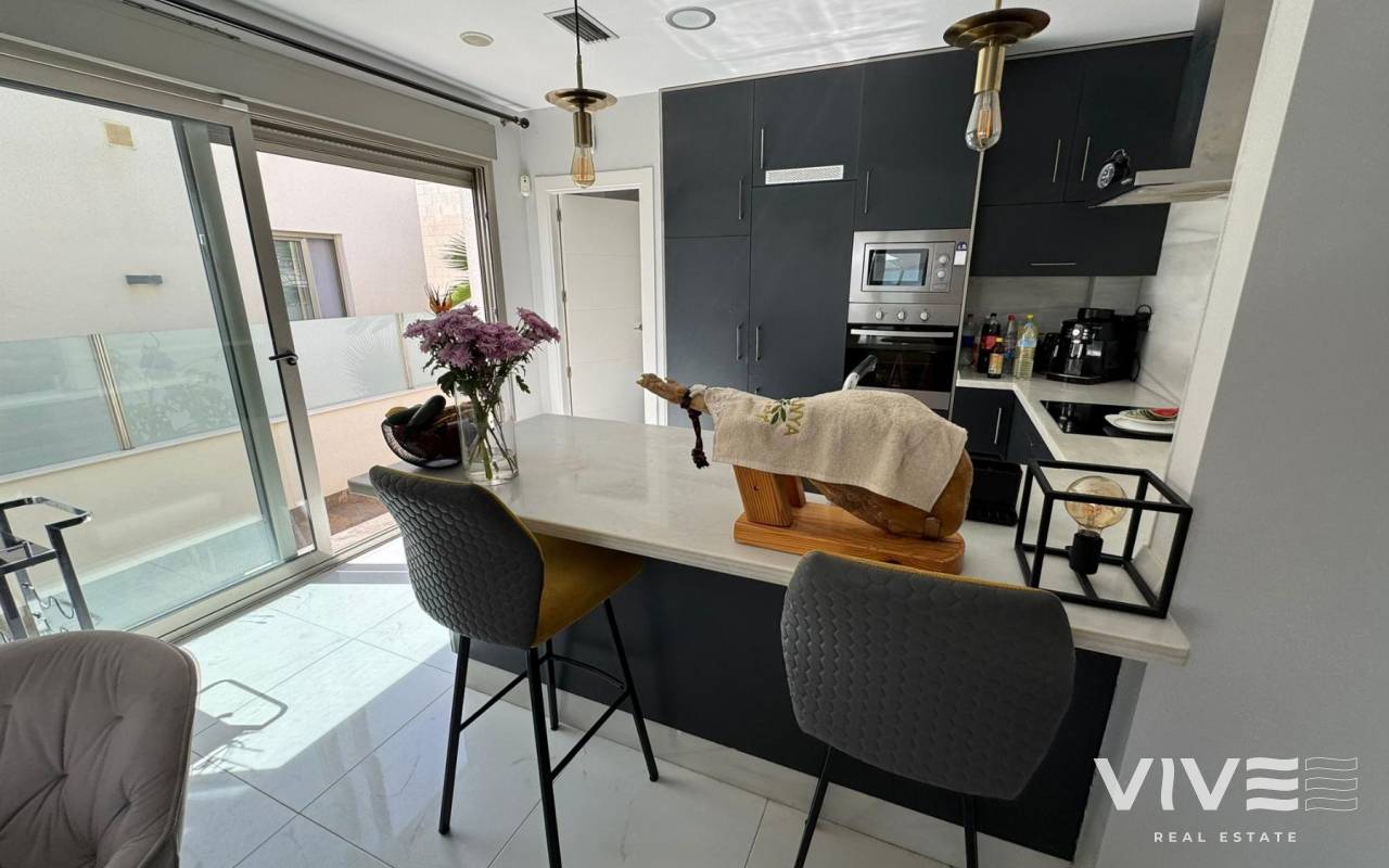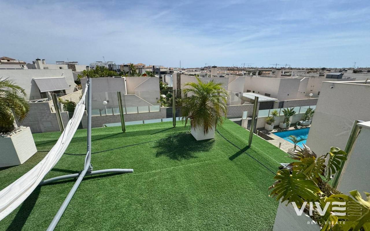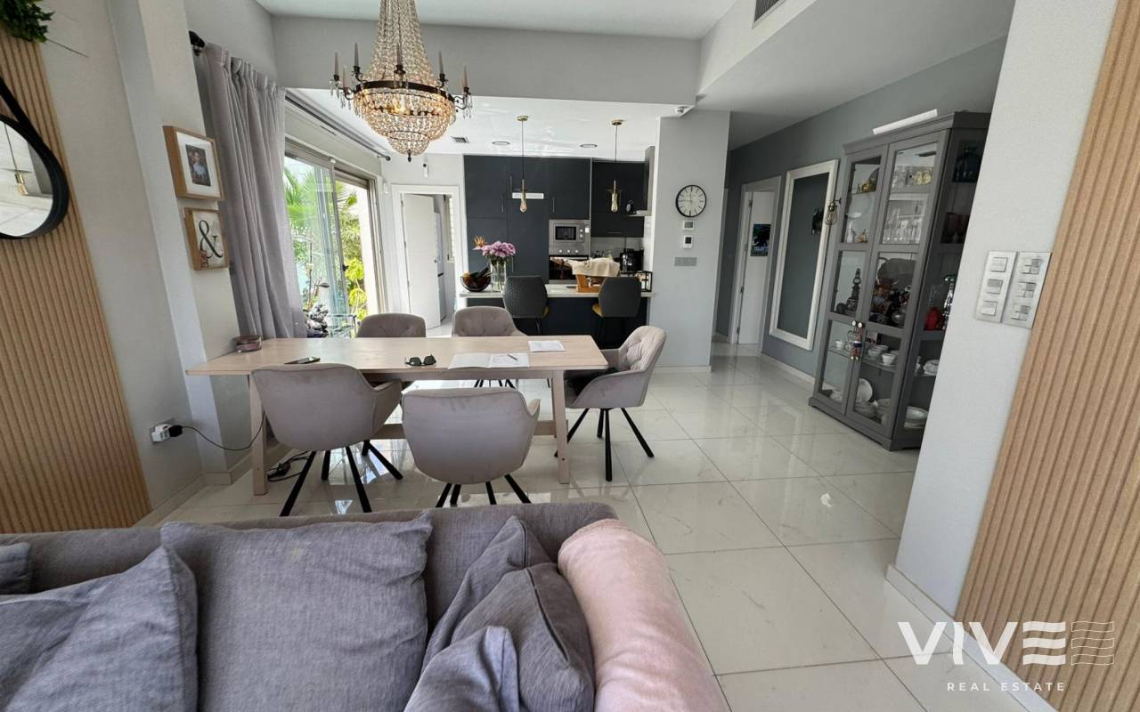 Exquisito Chalet Independiente en Villamartín Lujo, Playa y Calidad de Vida en Orihuela Costa (Costa Blanca)Precio 487.000 €Descubre este espectacular chalet independiente ubicado en una de las zonas más exclusivas y codiciadas de la Costa Blanca Villamartín, Orihuela Costa. Construido en 2018, con un diseño moderno y funcional, esta propiedad ofrece 243 m² construidos sobre una parcela de 367 m², ideal para quienes buscan confort, privacidad y una excelente calidad de vida.Cuenta con 5 amplios dormitorios, 4 baños elegantes, un luminoso salón-comedor con acceso directo a terraza con vistas laterales, y una cocina abierta totalmente equipada que invita a compartir en familia o con amigos. Además, incluye aire acondicionado, trastero, un impresionante solárium privado de 150 m², y una refrescante piscina privada perfecta para los días soleados del Mediterráneo. Orientación noreste que garantiza frescor natural y buena luz durante todo el día.Ubicada cerca de todos los servicios esenciales supermercados, restaurantes, bares, farmacias y centros comerciales como Zenia Boulevard, uno de los más grandes y visitados del sur de Alicante. A solo 45 minutos del Aeropuerto de Alicante y con fácil acceso a las principales vías de comunicación.Villamartín es conocida por su vibrante campo de golf internacional, rodeado de naturaleza y zonas residenciales de alto nivel. A pocos minutos en coche se encuentran algunas de las playas más hermosas de Orihuela Costa, como Playa Flamenca, La Zenia, Cabo Roig o Campoamor, con sus aguas cristalinas y su ambiente familiar.Orihuela Costa no solo es sol y playa también ofrece una intensa agenda cultural y festiva, como las fiestas patronales, conciertos al aire libre, mercados artesanales, y una amplia oferta gastronómica con cocina mediterránea e internacional.El clima en esta zona es privilegiado, con más de 300 días de sol al año, inviernos suaves y veranos cálidos, ideal para vivir todo el año o disfrutar de largas temporadas.Esta es una oportunidad única para vivir en una zona con alta calidad de vida, gran proyección y encanto turístico internacional.IBI 700 €COMUNIDAD 200 € AÑO¡Ven a descubrir tu nuevo hogar en la Costa Blanca!