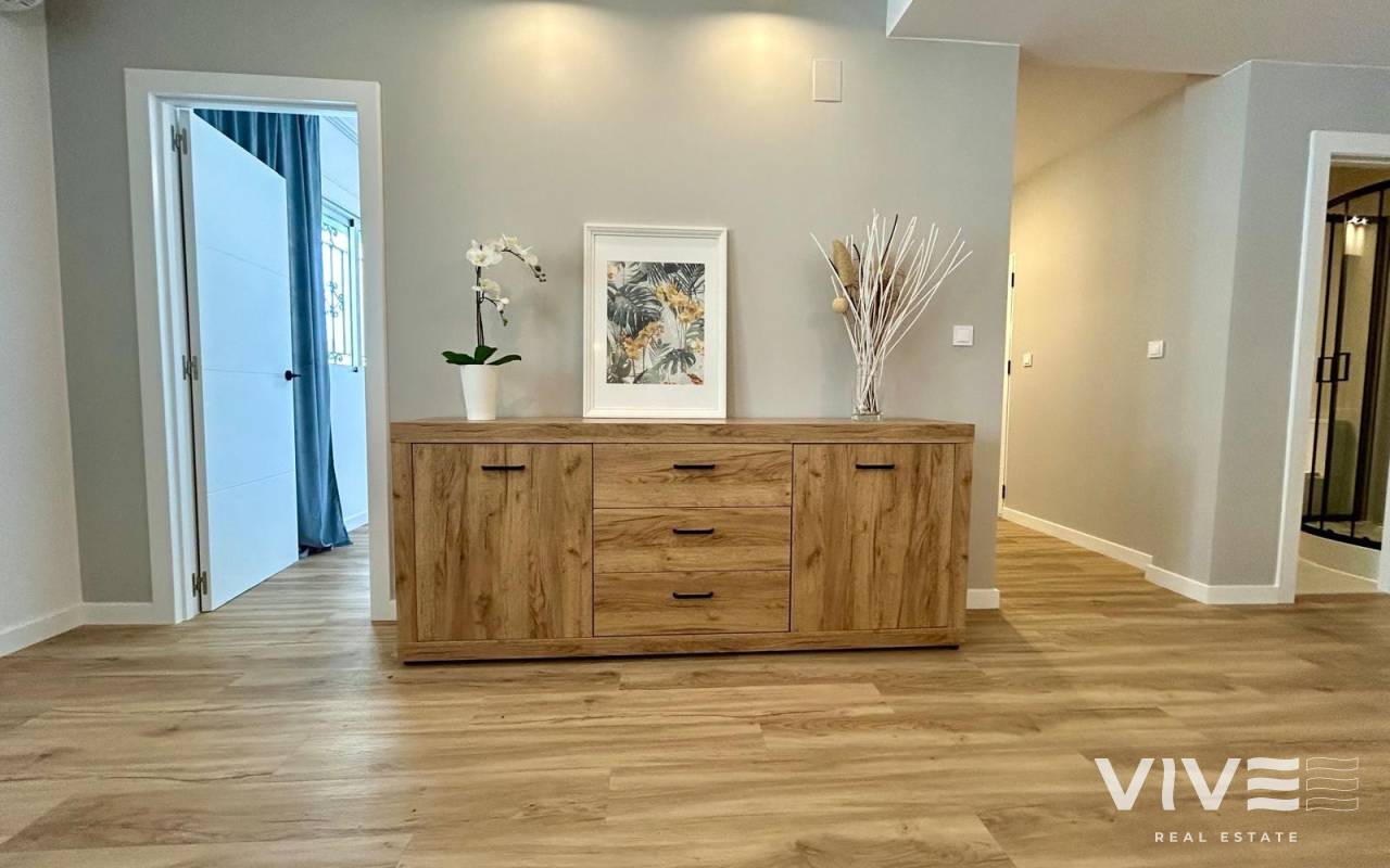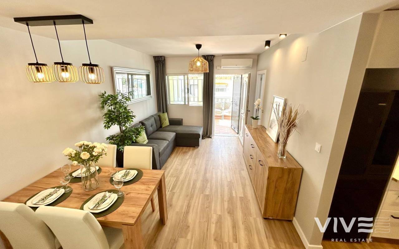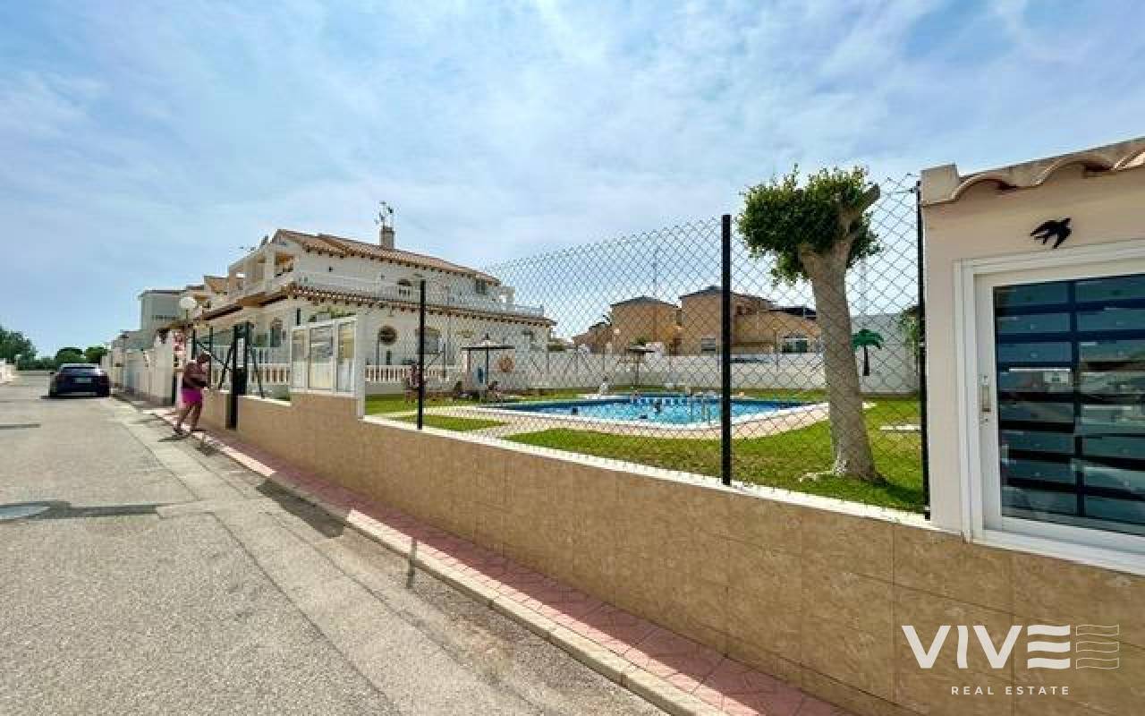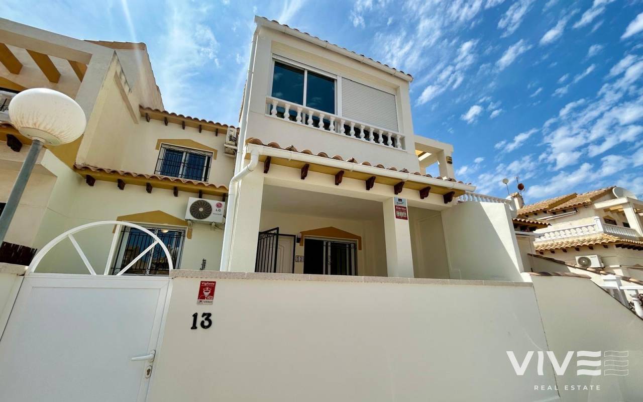 Completamente reformada casa adosada ubicada en la tranquila comunidad de Los Naranjos, en Los Altos. La vivienda ha sido completamente renovada y se encuentra en estado impecable, lista para entrar a vivir. Con la superficie construida de 83m2, consta de tres dormitorios y dos baños completos, salón -comedor, cocina independiente, porche delantero cubierto. La cocina equipada con todos los electrodomésticos modernos, con la zona de lavadero. La vivienda se distribuye en dos plantas y tiene un diseño funcional y moderno. Acceso a la vivienda a través de un jardín privado. En la planta superior se encuentran dos amplios dormitorios dobles, ambos con armarios, y un segundo baño completo con bañera. El dormitorio principal orientado al sur, lo que le proporciona una luz natural durante todo el día. Aire acondicionado instalado en cada estancia. Se vende completamente amueblada, con muebles de calidad y todo lo necesario para entrar a vivir (excepto efectos personales y elementos decorativos). Residencial ofrece una preciosa piscina comunitaria, y la vivienda se sitúa en una calle muy tranquila, con fácil aparcamiento y entorno agradable. A solo 400 metros esta el supermercado Consum, varios restaurantes, a 15 minutos andando del centro comercial Punta Marina. La Playa de Punta Prima esta a 2 km.~~El precio de venta no incluye el impuesto (ITP- tipo vigente según comunidad autónoma)