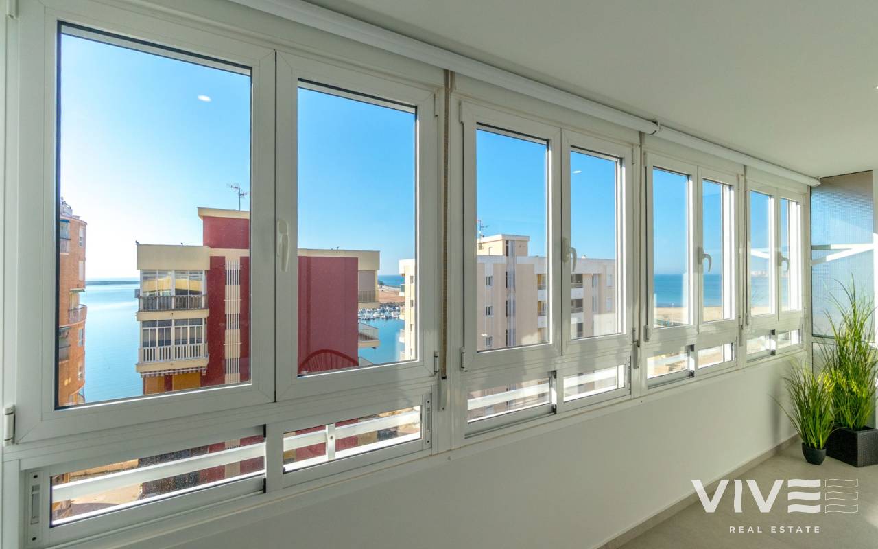 Vive el Mediterráneo desde tu nuevo hogar Apartamento a estrenar con vistas al mar – Torrevieja centro Descubre este espectacular apartamento completamente reformado en 2025, ubicado en la quinta planta de un edificio con ascensor, en pleno corazón de Torrevieja. A solo pasos del mar, del puerto deportivo, del paseo marítimo y de todos los servicios. Dispone de tres amplios dormitorios, dos baños modernos, una cocina abierta con electrodomésticos Siemens de última generación, salón-comedor luminoso y una terraza privada con vistas al mar. Incluye plaza de garaje en el mismo edificio y sistema de aire acondicionado por conductos. Con una superficie de 100 m², esta vivienda combina diseño contemporáneo, calidad y ubicación privilegiada. Ideal tanto para vivir todo el año como para vacaciones o inversión.
