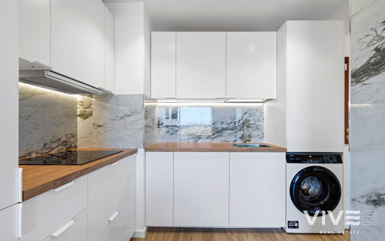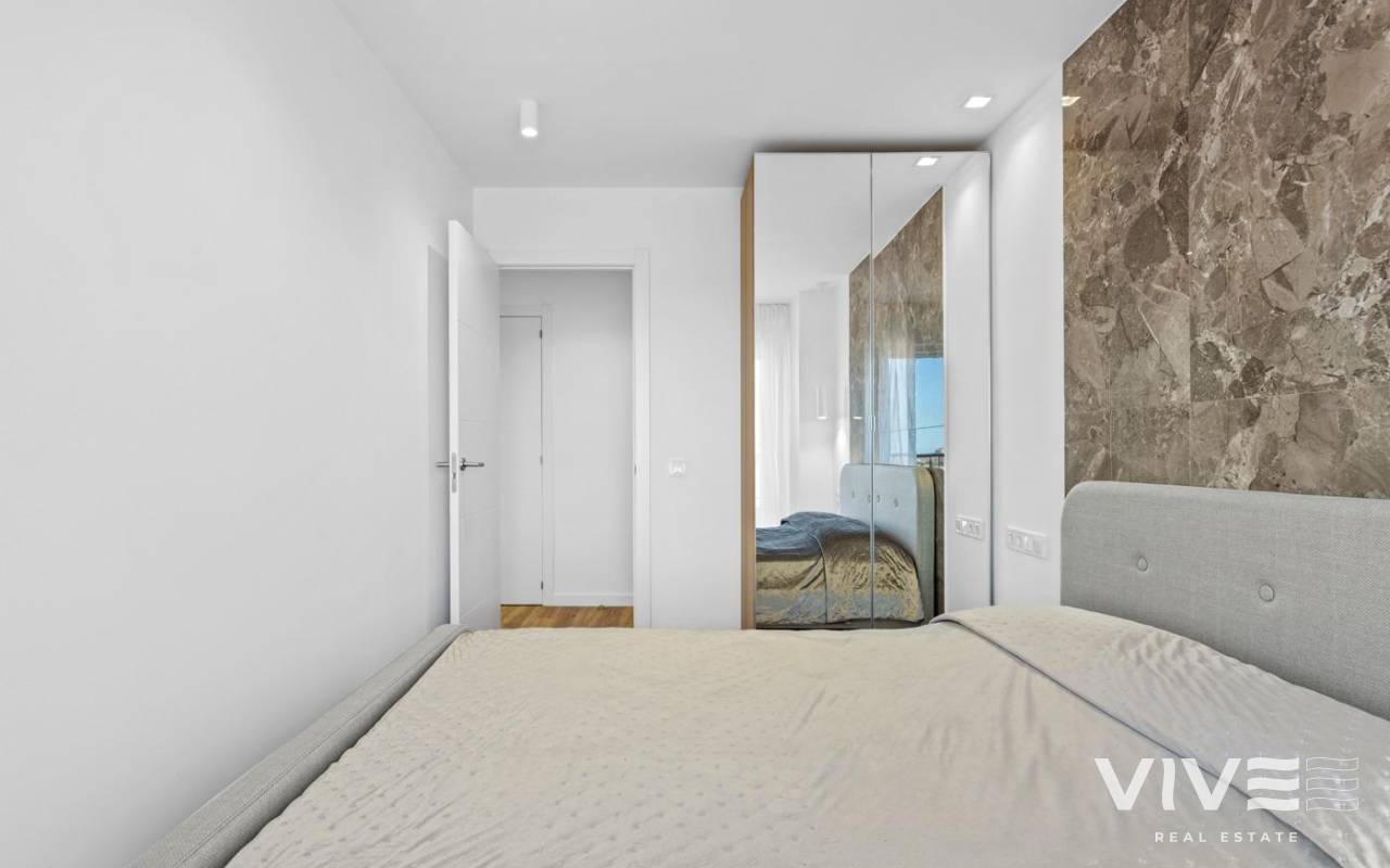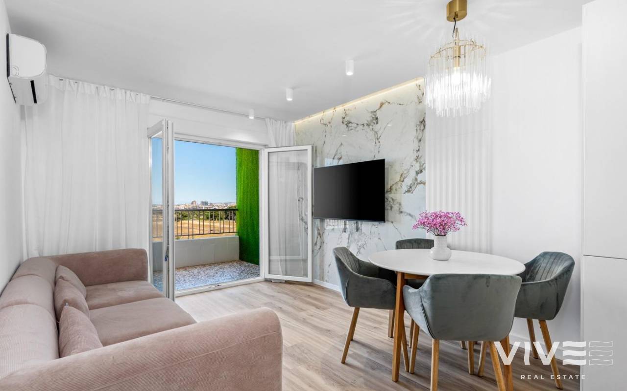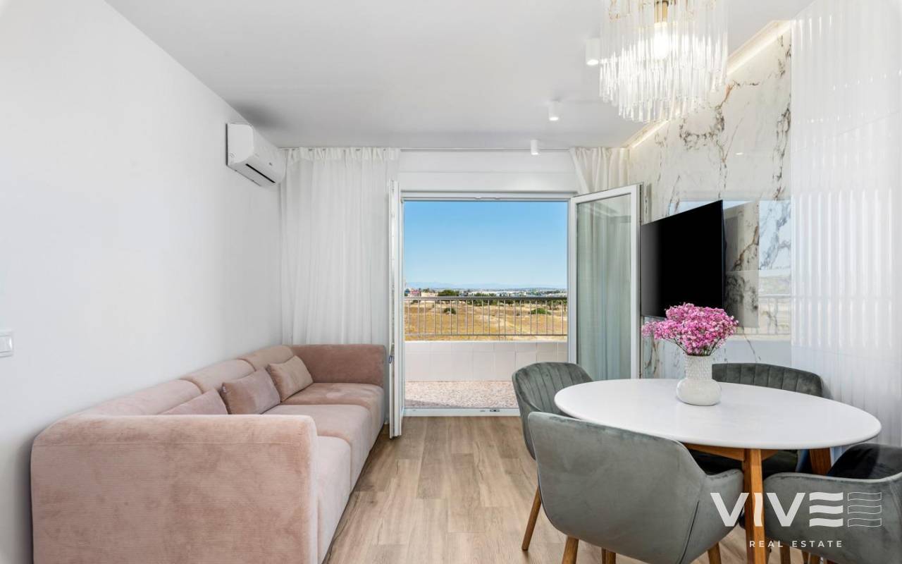 Apartamento totalmente renovado ubicado en unos de las áreas mas solicitadas, Punta Prima. Situado a tan solo 600 m de la playa, tiene magnificas vistas de la terraza, especialmente por la noche. Consta de 2 dormitorios y dos baños completos, cocina abierta al salón, totalmente equipada, aire acondicionado instalado, muebles a estrenar, ventanas insonorizadas con persianas eléctricas, iluminación ambiental. Diseña moderno, altas calidades de materiales. Renovación completa, incluyendo la fontanería y electricidad. Ideal para vacaciones o residir todo el año. Cerca de todos los servicios, supermercados, parada de bus, amplia elección de bares y restaurantes.