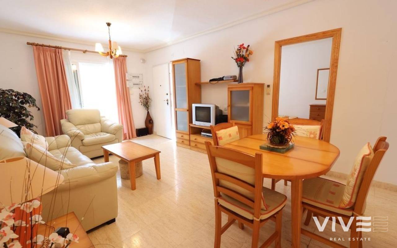 Encantador bungalow en planta baja ubicado frente a una zona verde en uno de los residenciales más valorados de la zona. La vivienda cuenta con una superficie de 75 m2 distribuidos en 2 dormitorios con armarios empotrados, 2 baños completos (uno en suite), un luminoso salón-comedor, cocina americana con galería cerrada y una acogedora terraza acristalada perfecta para disfrutar todo el año.. . El jardín privado de unos 46 m2 ofrece espacio ideal para relajarse o disfrutar de comidas al aire libre. La propiedad se vende completamente amueblada, equipada con aire acondicionado y además incluye un garaje subterraneo.. . El residencial dispone de una hermosa piscina comunitaria rodeada de cuidados jardines, creando un entorno tranquilo y agradable. Situado cerca de todos los servicios, supermercados, restaurantes y a pocos minutos de las playas de Orihuela Costa. Ideal como residencia habitual o para vacaciones.