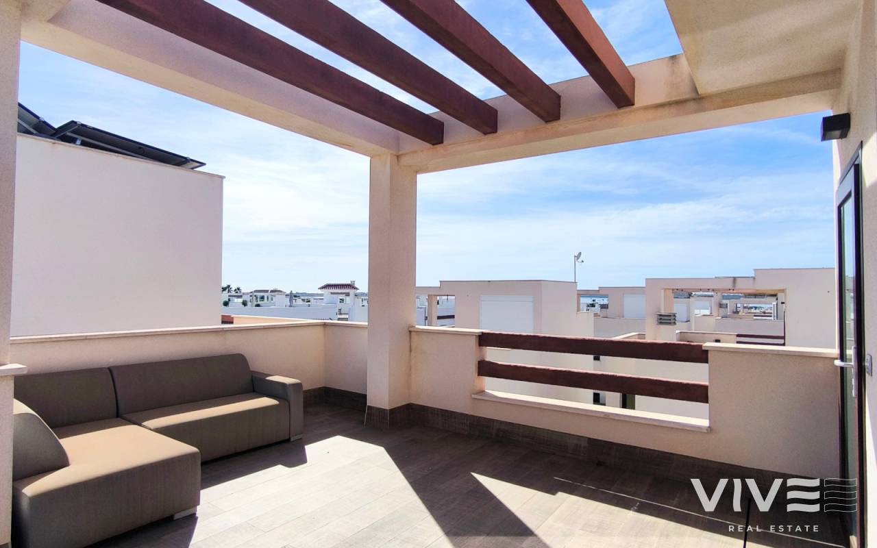 Un elegante torreón moderno da acceso al solárium privado, un espacio único para tomar el sol, relajarse o disfrutar de las tardes mediterráneas con vistas despejadas.