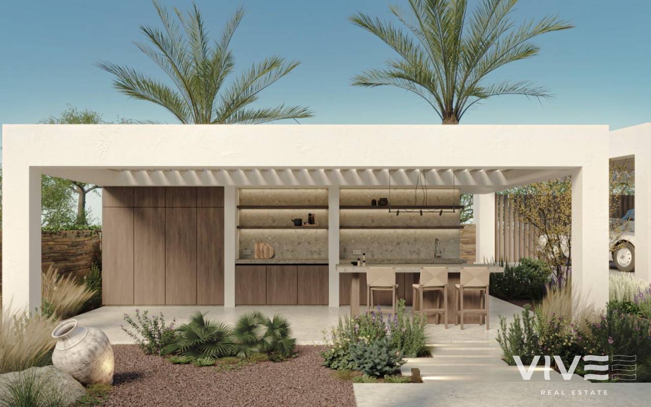Villas sostenibles de estilo mediterráneo en venta en Macenas, Almería Disfrute de la esencia de la vida mediterránea con esta nueva promoción de villas exclusivas en Macenas, Almería. Situadas en un complejo residencial privado a solo 600 metros de la playa y rodeadas de paisajes naturales vírgenes, estas viviendas son perfectas para quienes buscan relajación, elegancia y sostenibilidad junto al mar. Vida exclusiva en un complejo turístico cerca del Mediterráneo Este nuevo proyecto residencial ofrece villas independientes de 3 o 4 dormitorios en amplias parcelas. Situadas en un complejo privado en la costa de Almería, cada vivienda cuenta con amplias terrazas con impresionantes vistas al mar o al campo de golf, ideales para disfrutar del clima templado durante todo el año. El complejo se encuentra a solo 6 km de Mojácar Pueblo, un encantador pueblo conocido por sus casas en blanco y su patrimonio cultural. Diseño moderno con aire mediterráneo Estas villas combinan la arquitectura contemporánea con toques tradicionales mediterráneos, integrándose a la perfección en el paisaje natural de Macenas. Construidas con materiales sostenibles y jardines autóctonos de bajo consumo de agua, la urbanización promueve un estilo de vida ecológico. También está previsto un futuro campo de golf de 18 hoyos integrado en el entorno, lo que añadirá valor a largo plazo a la comunidad. Características premium y sistemas de alta eficiencia Todas las villas cuentan con una cocina SANTOS totalmente equipada y personalizable con electrodomésticos de alta gama. La climatización se proporciona mediante aire acondicionado por conductos y calefacción por suelo radiante alimentada por un sistema aerotérmico de alta eficiencia energética. El sistema de zonificación inteligente Airzone garantiza el máximo confort térmico en toda la vivienda. Otras características adicionales incluyen: Carpintería exterior de aluminio Technal con rotura de puente térmico Persianas de aluminio motorizadas y regulables Piscina privada de 7,5 m x 3,2 m Pérgola de aluminio lacado Extras opcionales como chimenea, cocina de verano y paquetes de mobiliario a medida Ubicación privilegiada y puntos de interés cercanos Playa de Macenas – 600 m Mojácar Pueblo – 6 km Marina de la Torre Golf – 9 km Parque Natural de Cabo de Gata: 30 km Ciudad de Almería: 88 km Aeropuerto de Almería: 77 km Su escapada mediterránea le espera Tanto si busca una residencia permanente, un refugio para las vacaciones o una inversión sólida, estas villas mediterráneas sostenibles en Macenas ofrecen un estilo de vida inigualable en la costa de Almería. Póngase en contacto con nosotros hoy mismo para obtener más información o concertar una visita.