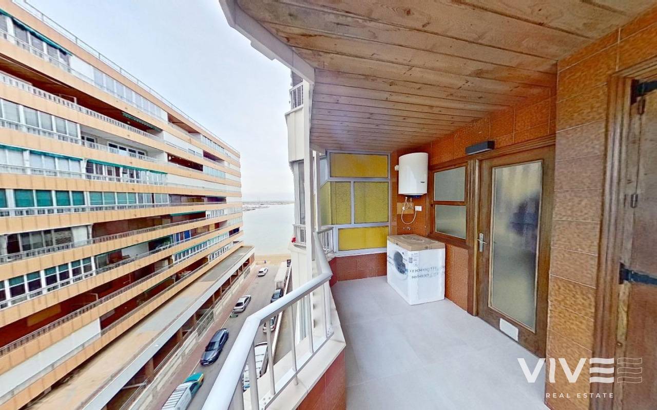 Apartamento Totalmente Reformado con Vistas Laterales al Mar Torrevieja, 235.000 €Descubre este espectacular apartamento de 110 m² construidos en primera línea de la playa de Acequión, con vistas laterales al mar que te harán sentir que cada día es vacaciones. La propiedad se encuentra completamente reformada y lista para entrar a vivir, ofreciendo comodidad y estilo mediterráneo.Características principales de la viviendaSuperficie construida 110 m²Terraza 15 m², ideal para disfrutar del sol y vistas al marDormitorios 3 amplios dormitoriosBaños 2 completosCocina abierta y moderna, integrada con el salón-comedorSalón-comedor luminoso y acogedorPiscina comunitaria para refrescarse en veranoAcceso privado a la playa de Acequión y a 100 metros de la playa de Los NáufragosTotalmente reformado, listo para entrar a vivirUbicación y serviciosA pasos de supermercados, farmacias, restaurantes, bares y centros comercialesFácil acceso al aeropuerto de Alicante (aprox. 40 minutos)Entorno seguro, tranquilo y muy bien comunicadoCalidad de vida en TorreviejaPlayas de aguas cristalinas y bandera azulPaseo Marítimo, puerto deportivo y oferta culturalParque Natural de las Lagunas de La Mata y Torrevieja a pocos minutosClima mediterráneo con más de 300 días de sol al añoCiudad ideal tanto para residir todo el año como para disfrutar de vacacionesEste apartamento combina ubicación privilegiada, diseño moderno y confort. Una oportunidad única para vivir frente al mar con todas las comodidades y servicios a tu alcance.IBI 310 €COMUNIDAD 480 €