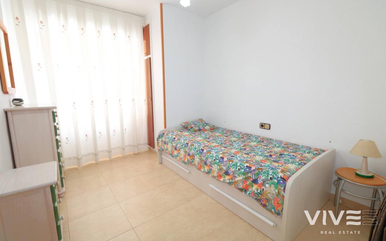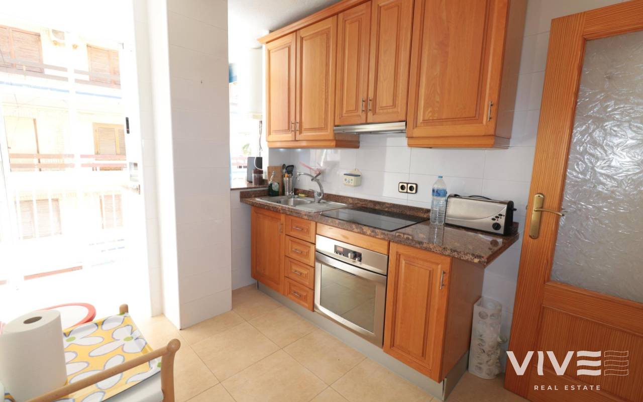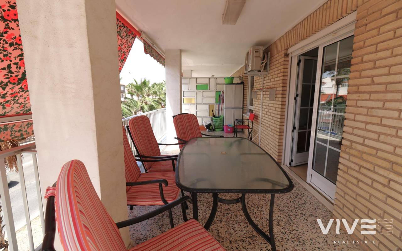 Apartamento en Torrevieja zona Playa de los Naufragos, 85 m. de superficie, 23 m2 de terraza, 10 m. de la playa, 3 habitaciones, un baño, propiedad en Buen estado, cocina equipada.~Extras: aire acondicionado, armarios empotrados, balcon, bomba frío y calor, esquina, luminoso, muebles, terraza, autobuses, costa, supermercados, urbanización, vistas al mar, vistas despejadas~