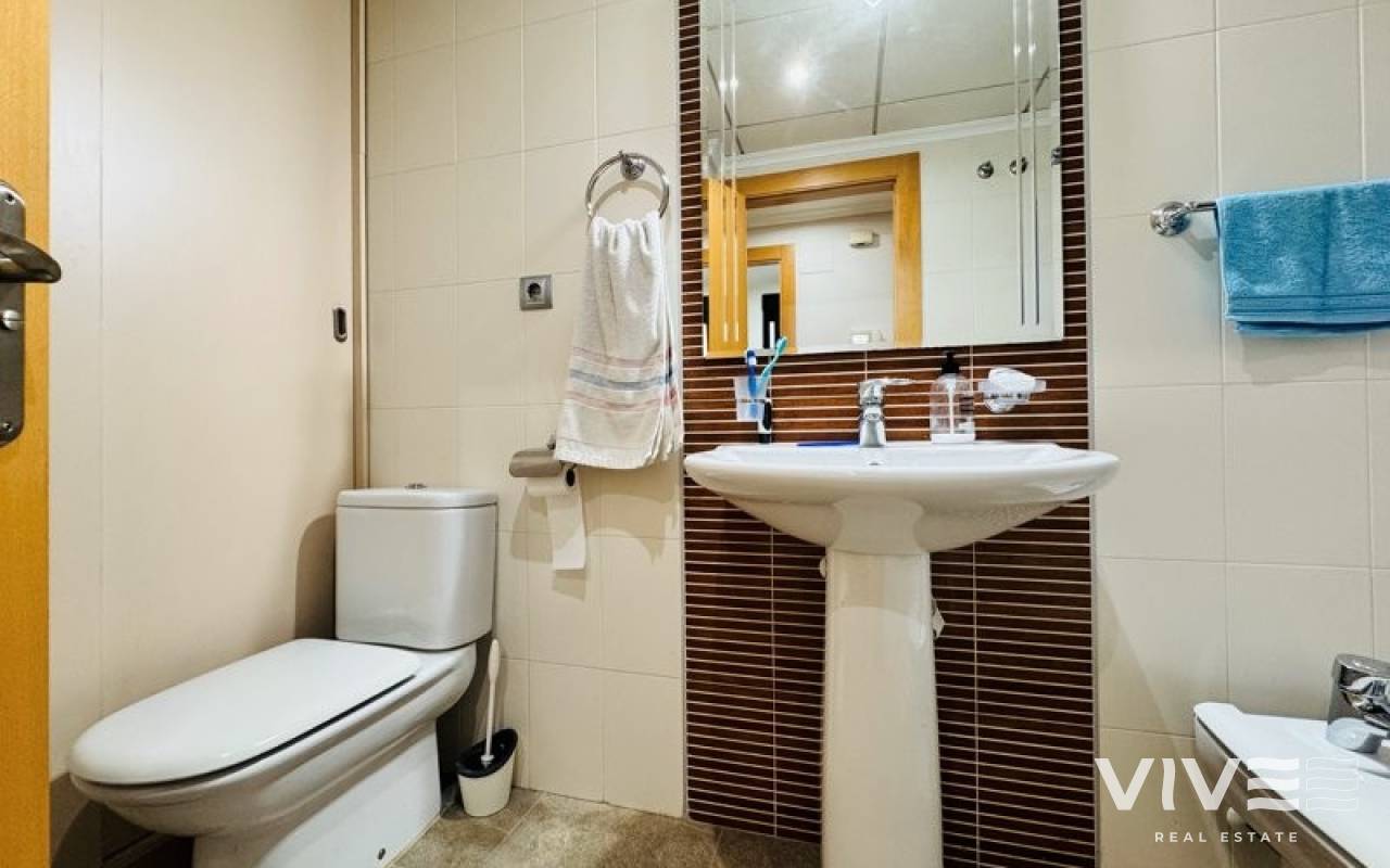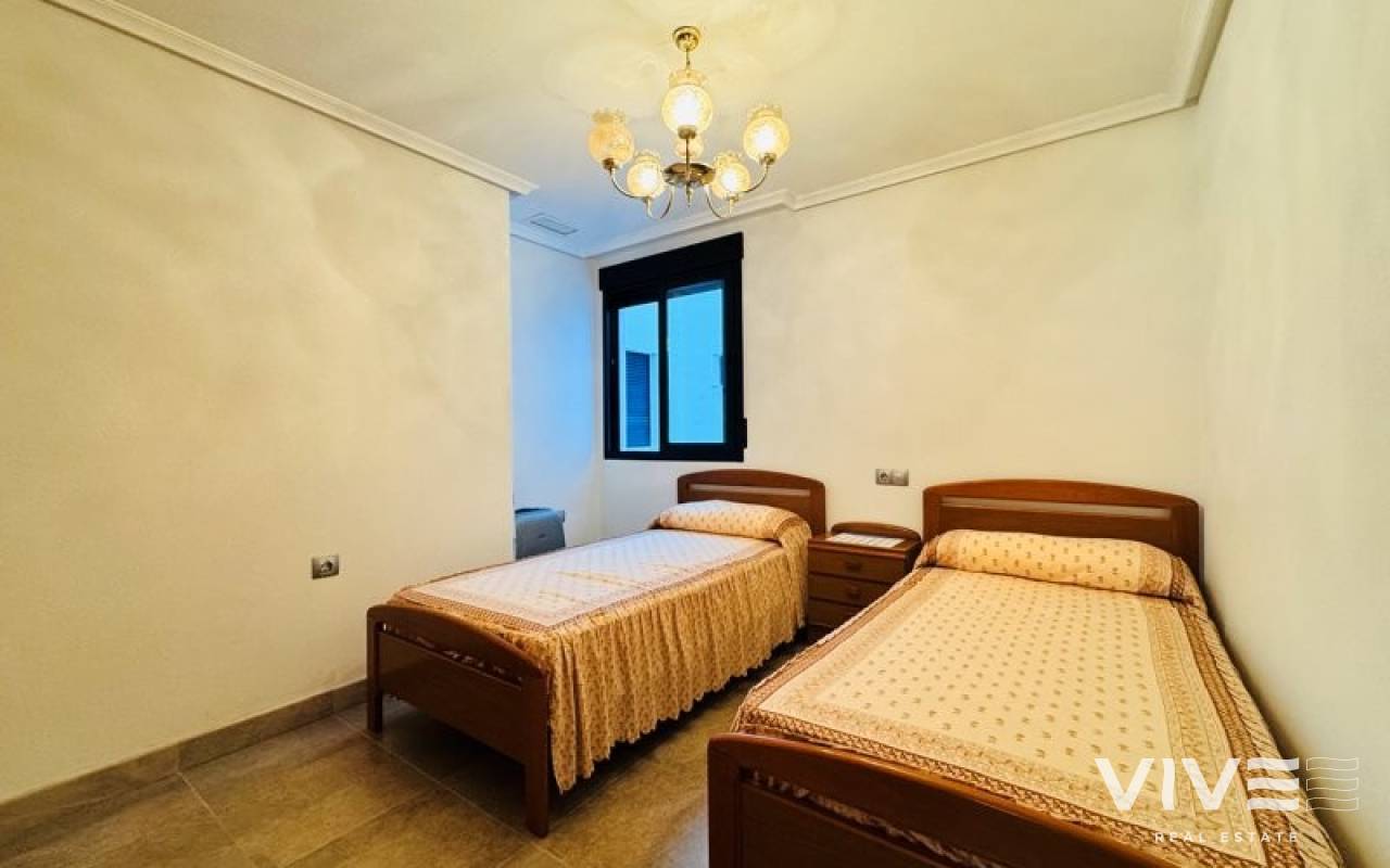 Es un apartamento situado en el centro de La Mata, junto a todos los servicios y a tan solo 100 m de la playa. Tiene una superficie de 58 m2 distribuidos en cocina independiente, salón comedor, 2 dormitorios y un baño. Terraza con orientación SUR de 8 m2 y vistas laterales al mar. Es una 1ª planta con ascensor y se vende semi-amueblado. Edificio del año 2007 Comunidad: 300 € al año IBI: 218 €