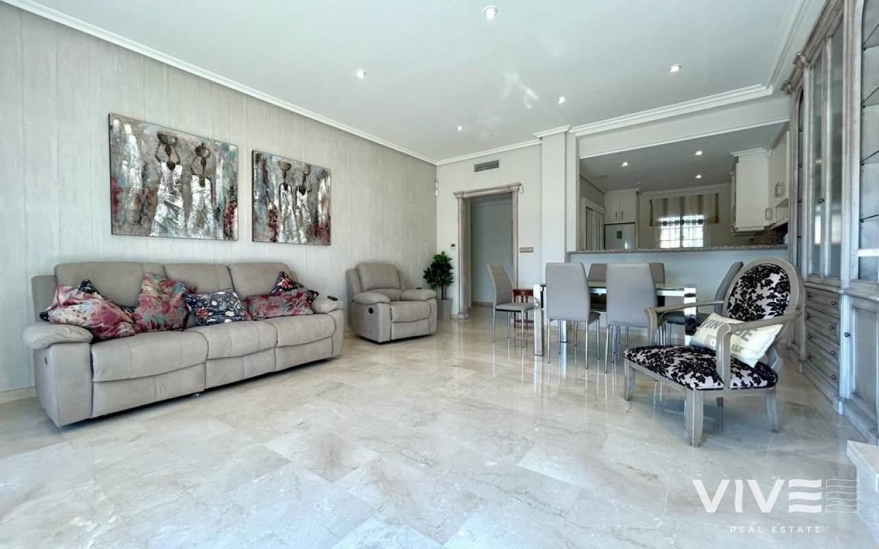 Descubra este magnífico ático en primera línea del mar Mediterráneo, ubicado en la prestigiosa zona de Cabo Roig, una de las áreas residenciales más demandadas de la Costa Blanca.~~La vivienda cuenta con 104 m2 construidos, complementados por un solárium privado y dos amplias terrazas que permiten disfrutar de espectaculares vistas panorámicas al mar y de la luminosidad que ofrece su orientación privilegiada.~~Situado en un edificio de primerísimas calidades, este ático dispone de acceso a piscina comunitaria, cuidados jardines y todas las comodidades de una urbanización exclusiva. Incluye además plaza de aparcamiento subterráneo y trastero, aportando la máxima funcionalidad y confort.~~Su inmejorable ubicación frente al paseo marítimo le permitirá acceder caminando a una amplia oferta de servicios, restaurantes, comercios y zonas de ocio, combinando a la perfección tranquilidad residencial y vida mediterránea.~~Este inmueble representa una oportunidad única para quienes buscan un hogar de ensueño junto al mar o una inversión de alto valor en una de las mejores zonas de Orihuela Costa.