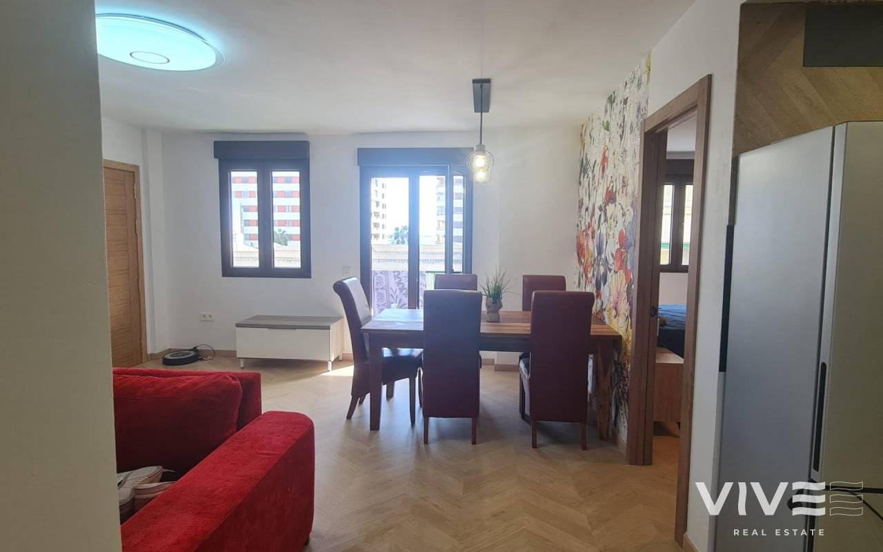 Presentamos este magnífico apartamento ático situado en la zona de Acequion, Torrevieja. Con una superficie construida de 107 m2, esta propiedad ha sido completamente reformada y se encuentra en perfectas condiciones para entrar a vivir. Dispone de tres amplios dormitorios dobles que ofrecen comodidad y espacio suficiente para toda la familia. La vivienda cuenta con dos baños bien diseñados, garantizando privacidad y funcionalidad. Su orientación sur permite el disfrute del sol durante gran parte del día mientras se aprovecha su amplia terraza exterior perfecta para relajarse o disfrutar al aire libre.~~La ubicación es inmejorable; a tan solo 100 metros de la playa, lo cual convierte este inmueble en un lugar ideal tanto como residencia permanente como opción vacacional. Es importante tener en cuenta que no dispone de ascensor.
