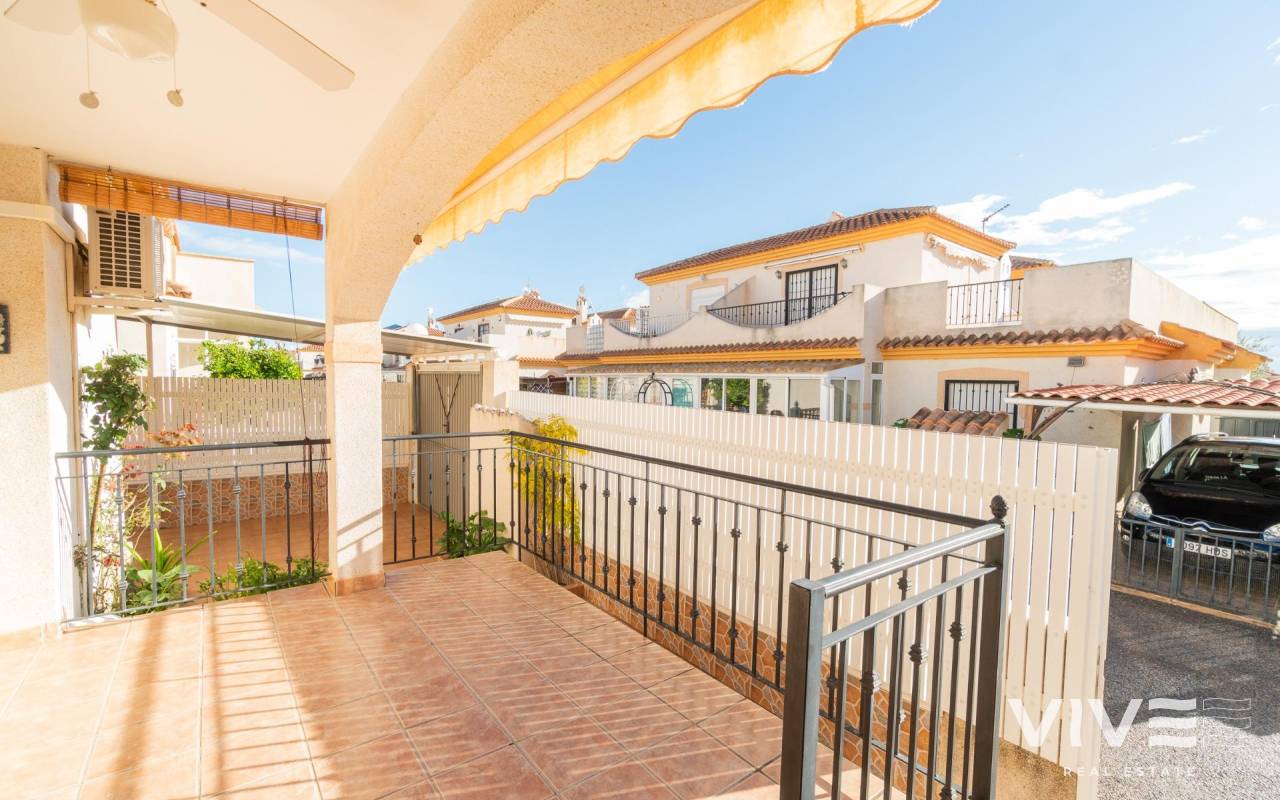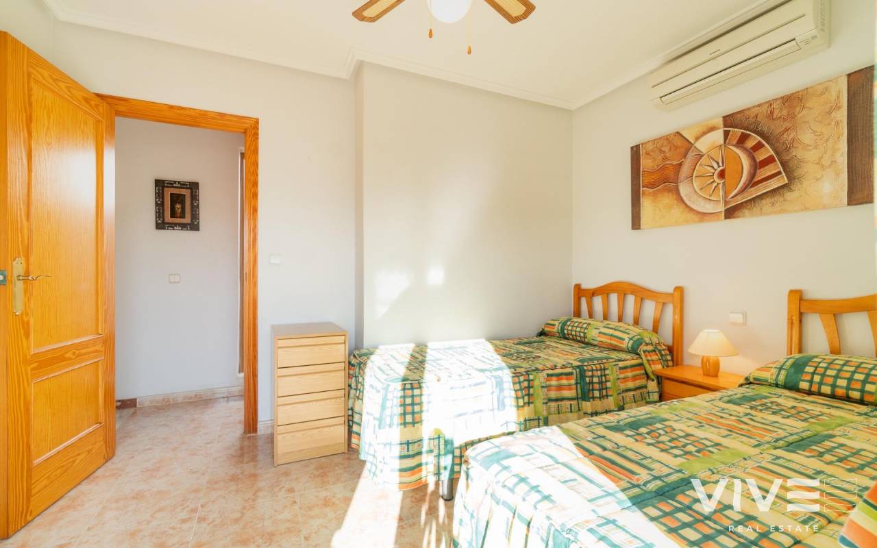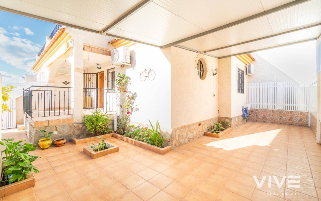 Descubre esta maravillosa propiedad situada en la codiciada zona de Playa Flamenca. Este acogedor quad de dos habitaciones y dos baños ofrece el perfecto equilibrio entre comodidad y estilo, siendo ideal tanto para vivir como para invertir, a pocos minutos del centro comercial La Zenia Boulevard y de las hermosas playas de Orihuela Costa.. . Con una superficie construida de 63 m2 y una impresionante terraza privada de 45 m2 orientada al este, podrás disfrutar del sol durante todo el día. A solo 1500 metros del mar, tendrás fácil acceso a las mejores playas de la región. La vivienda se encuentra completamente amueblada e incluye comodidades modernas como aire acondicionado, un práctico lavadero y un sistema de riego automático en el jardín.. . En la planta baja, encontramos el salón comedor, una cocina totalmente equipada, un lavadero, el dormitorio principal y un baño completo.. . En la primera planta se encuentran el segundo dormitorio con acceso a una terraza privada y el segundo baño.. . Además la propiedad cuenta con piscina comunitaria perfecta para los días soleados! No olvidemos mencionar que podrás aparcar tu coche directamente dentro de la parcela lo que brinda seguridad adicional a tu vehículo.. . La ubicación es inmejorable: cerca encontrarás autobuses que conectan fácilmente con otros puntos importantes; así como centros comerciales donde realizar todas tus compras diarias, y servicios médicos disponibles gracias a hospitales cercanos.. . Si buscas calidad de vida junto al mar o simplemente quieres hacer una inversión segura, pregunta por ella hoy mismo!