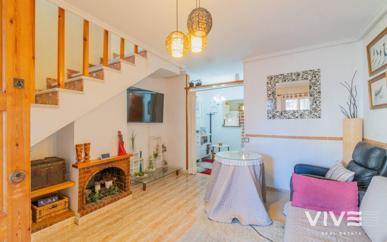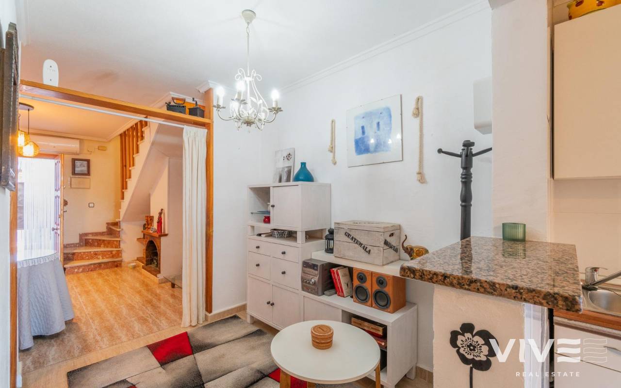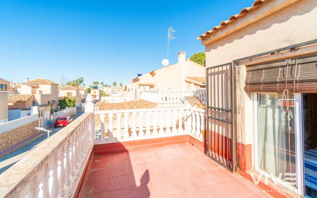 Descubre este acogedor adosado ubicado en la deseada zona de Los Balcones en Torrevieja. Con una superficie construida de unos 60 m2 incluyendo la ampliación de la cocina, esta propiedad es perfecta para disfrutar del sol y el confort mediterráneo gracias a su orientación sur.. . Ofrece una amplia terraza privada de 30 m2, ideal para relajarte o compartir momentos inolvidables con amigos y familiares.. . En la planta baja encontrarás un luminoso salón comedor perfecto para tus reuniones sociales, junto a una cocina funcional y aseo adicional.. . En la primera planta se sitúan dos dormitorios, cada uno cuenta con acceso a su propia terraza donde podrás contemplar las vistas al entorno natural que rodea tu nuevo hogar.. . Además, dispone de piscina comunitaria y podrás aparcar tu coche dentro de la parcela si lo deseas.. . Ubicada estratégicamente cerca del mar (solo a 1500 metros) así como servicios esenciales como colegios, hospitales y centros comerciales, esta vivienda te ofrece tanto tranquilidad como comodidad diaria.. . Viene completamente amueblada lista para entrar a vivir: solo trae tus maletas!. No pierdas la oportunidad única de adquirir este encantador refugio costero.