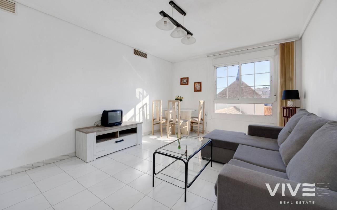 Algunas imágenes han sido generadas con inteligencia artificial para mostrar el potencial de la vivienda tras una posible reforma.Descubre esta luminosa vivienda situada en una de las zonas más céntricas y valoradas de Torrevieja, en la Plaza de la Constitución. Ubicada en la quinta planta, ofrece privacidad, buena iluminación natural y una excelente conexión con todos los servicios.Con aproximadamente 97 m², la vivienda se distribuye en vestíbulo, cocina independiente, salón-comedor, 2 baños completos y 2 amplios dormitorios, ofreciendo comodidad y funcionalidad.Sin terraza, integrada al dormitorio, pero amplios ventanales con vistas abiertas.Su excelente ubicación, a pocos minutos del paseo marítimo, playas, supermercados, restaurantes, centros médicos y transporte público, la convierte en una opción ideal tanto como residencia habitual como inversión, con alta demanda de alquiler anual y vacacional.Como extra, dispone de la opción de plaza de garaje en un edificio cercano.Plaza de garaje opcional (precio aparte).Una buena oportunidad en pleno corazón de Torrevieja.Las imágenes reformadas son recreaciones digitales (IA) con fines orientativos y no representan el estado actual del inmueble. La vivienda se vende en su estado actual. Además, contamos con un equipo especializado que puede ayudarte a llevar a cabo la reforma, adaptándola a tus necesidades, con posibilidad de presupuesto personalizado.
