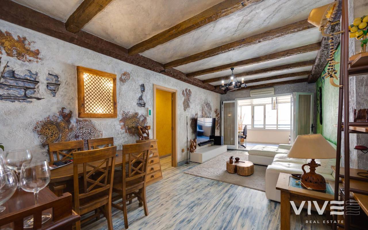 Encantador apartamento de estilo rústico recientemente reformado, situado en la zona de El Acequión, a solo 150 metros de la playa. Esta luminosa vivienda, ubicada en una primera planta, cuenta con 115 m² distribuidos en 3 amplios dormitorios y 2 baños completos. Con orientación sur, disfruta de luz natural durante todo el día, creando un ambiente cálido y acogedor. La propiedad se vende completamente amueblada y lista para entrar a vivir, destacando una elegante terraza acristalada ideal para disfrutar en cualquier época del año. La comunidad ofrece piscina para relajarse y disfrutar del buen clima. Su estilo rústico renovado combina el encanto tradicional con acabados modernos, aportando carácter y confort. Perfecto como residencia habitual o segunda vivienda junto al mar, con todos los servicios a pocos pasos.