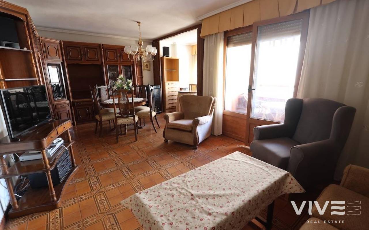Torrevieja Centro, Calle Azorin apartamento en planta tercera (con ascensor) y orientación Sur, vivienda de 117 m2 con 3 dormitorios, 2 baños, cocina amplia independiente, salón comedor, terraza, la vivienda se vende amueblada y equipada y con aire acondicionado, vistas laterales al mar.. . Posibilidad de comprar un garaje cerca de la vivienda !!