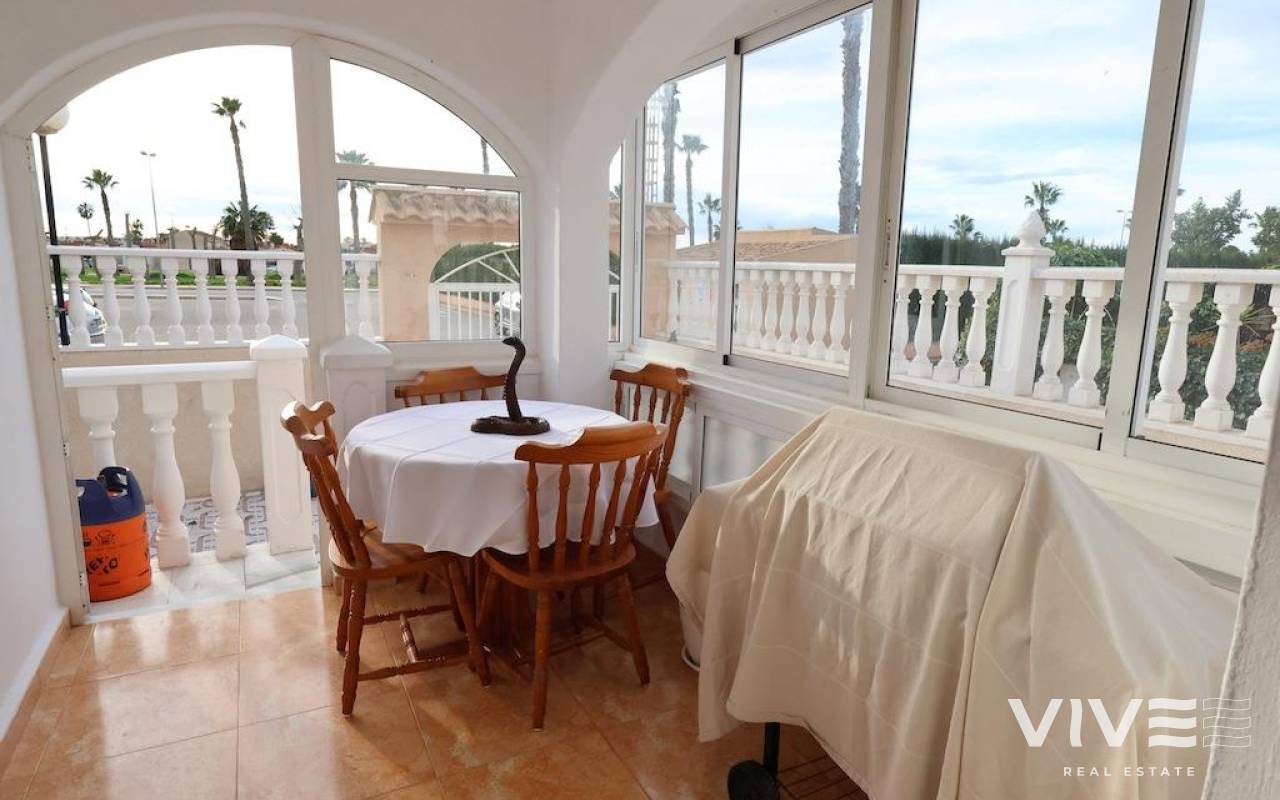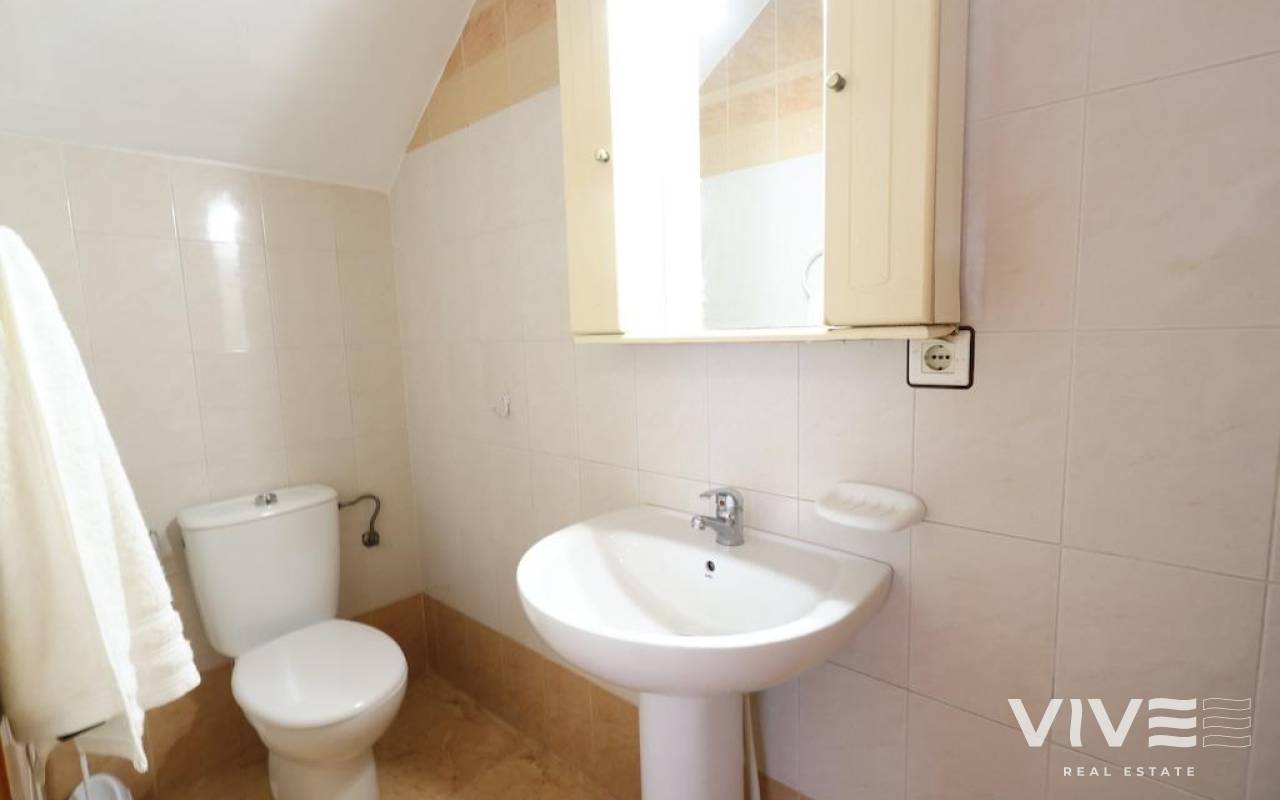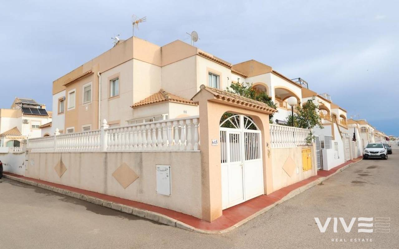 Altos del Limonar Adosado en esquina orientación Sur, con entrada para varios coches, la vivienda dispone de 90 m2 en dos plantas mas solarium de 26 m2, cuenta con 3 dormitorios (todos en la planta de arriba), 2 baños, cocina independiente y un amplio salñon comedor, desde el solarium se ve la piscina comunitaria y las zonas verdes, la vivienda se vende amueblada y con aire acondicionado.