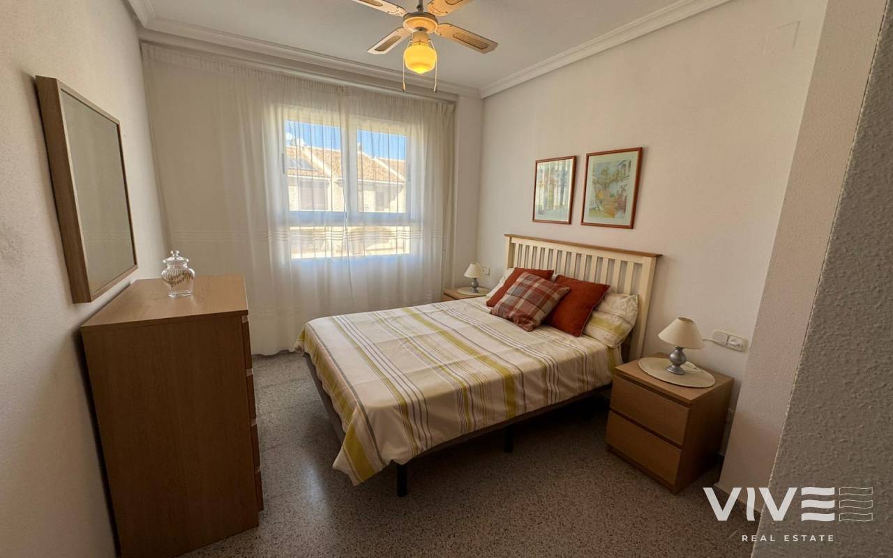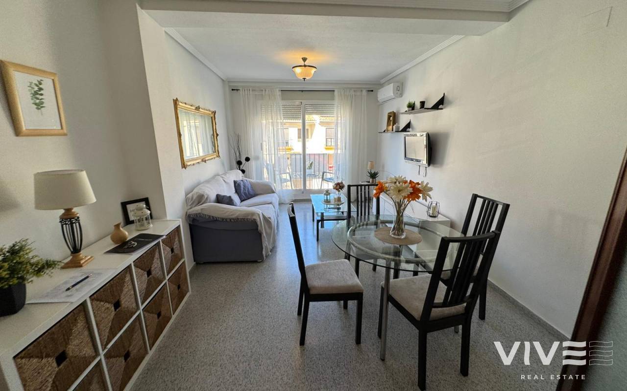 Te presentamos este amplio apartamento de 100 m² en San Miguel de Salinas, una vivienda en buen estado, ideal tanto como residencia habitual como para disfrutar de tus vacaciones. Su orientación noreste garantiza una agradable entrada de luz natural y una temperatura equilibrada durante todo el año, creando espacios confortables y acogedores.La vivienda dispone de 3 habitaciones y 2 baños, una cocina independiente totalmente equipada, y se entrega amueblada con electrodomésticos, lista para entrar a vivir. La terraza de 4 m² se convierte en el espacio perfecto para relajarse al aire libre, mientras que el solárium comunitario aportan un plus de ocio y bienestar.Características principales100 m² construidos3 habitaciones2 bañosCocina independienteTerraza de 4 m²solárium comunitario.Garaje incluidoAmuebladoIBI 157 €Comunidad 45 € trimestrales Precio 139.900 €Su ubicación es uno de sus grandes atractivos rodeado de todo tipo de servicios como bares, restaurantes, farmacias, supermercados y centros comerciales, lo que facilita un estilo de vida cómodo y práctico. Además, cuenta con garaje incluido, un valor añadido imprescindible.El aeropuerto de Alicante-Elche se encuentra aproximadamente a 55 km, lo que permite excelentes conexiones nacionales e internacionales . Agenda tu visita hoy mismo y descubre todo lo que este apartamento te puede recomendar.