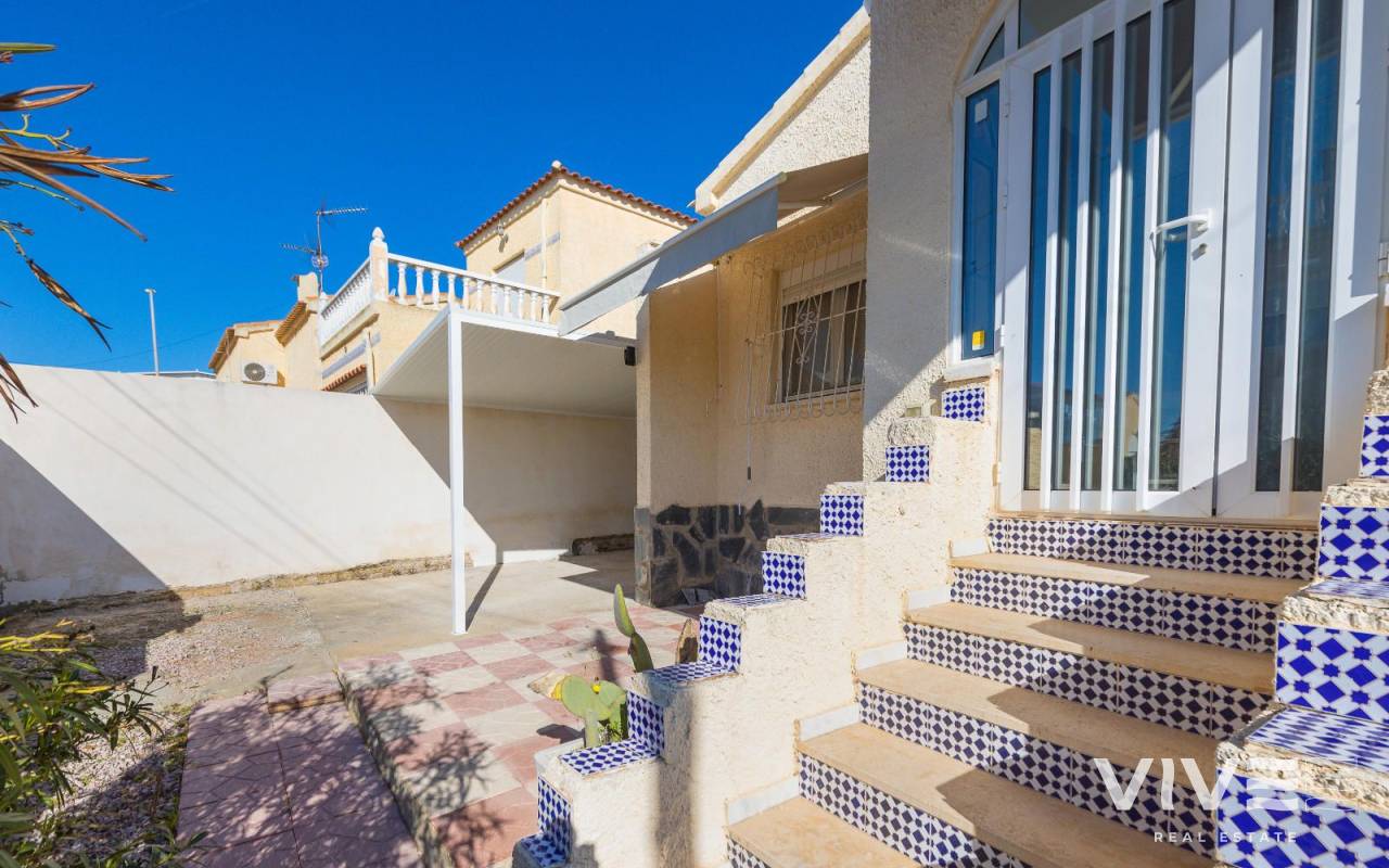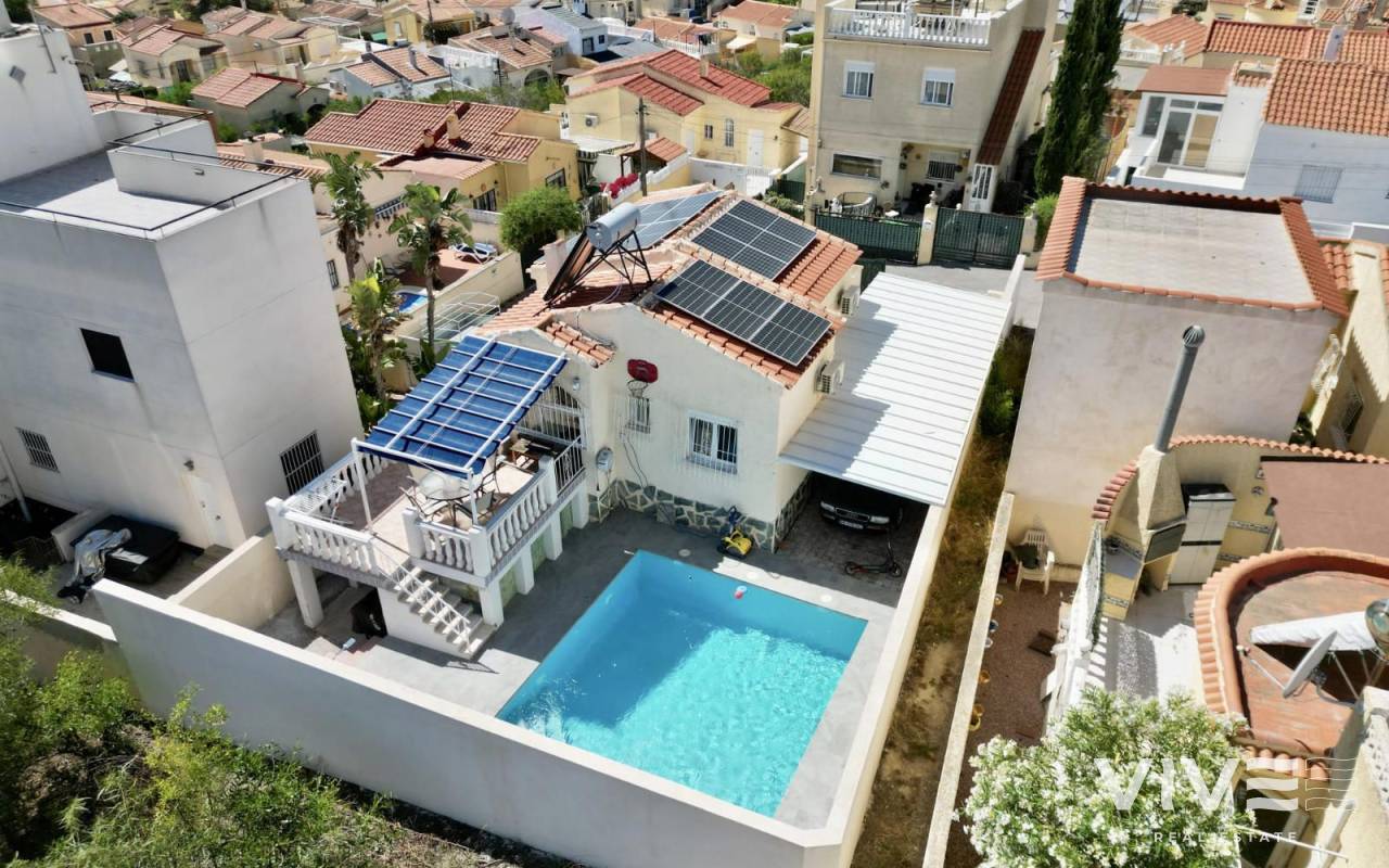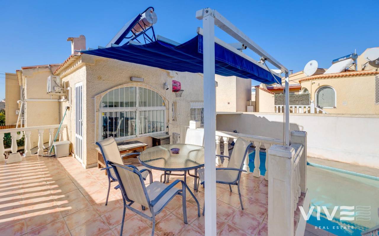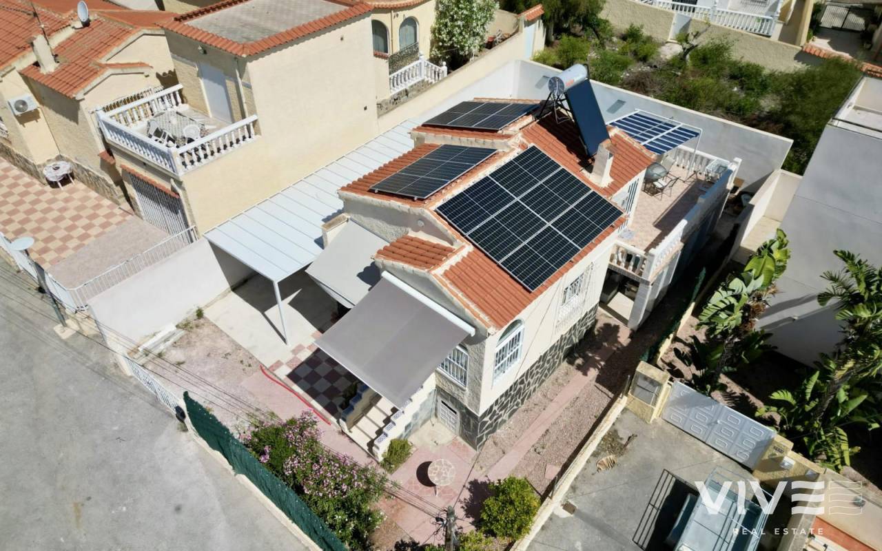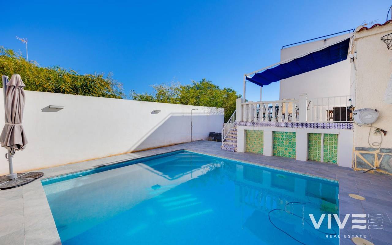 Bonita casa independiente con piscina privada situada en la tranquila y demandada urbanización La Marina. La vivienda cuenta con 51 m² construidos sobre una amplia parcela de 257 m², ofreciendo privacidad, comodidad y espacios exteriores ideales para disfrutar del clima mediterráneo.Se trata de un modelo Rosa ampliado, que dispone de 2 dormitorios y 1 baño, y que ha sido recientemente reformado, presentando un aspecto moderno, acogedor y listo para entrar a vivir.Uno de sus grandes atractivos es su sistema de energía solar, compuesto por 14 paneles solares con batería física de 7,5 kW, lo que proporciona un estilo de vida más eficiente, sostenible y con un importante ahorro energético.En el exterior encontramos una fantástica piscina privada, perfecta para disfrutar durante todo el año, además de una gran zona de almacenamiento bajo la terraza, muy práctica para guardar herramientas, bicicletas o mobiliario exterior.La propiedad está muy bien ubicada, cerca de todas las comodidades de la urbanización: centro médico, comercios, bares, restaurantes y supermercados, y a tan solo 4 km de las hermosas playas de la zona.Una excelente oportunidad tanto como vivienda habitual, casa de vacaciones o inversión en una de las zonas más populares de la Costa Blanca.