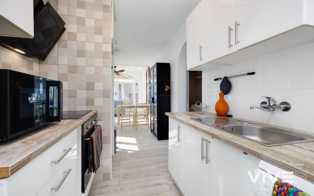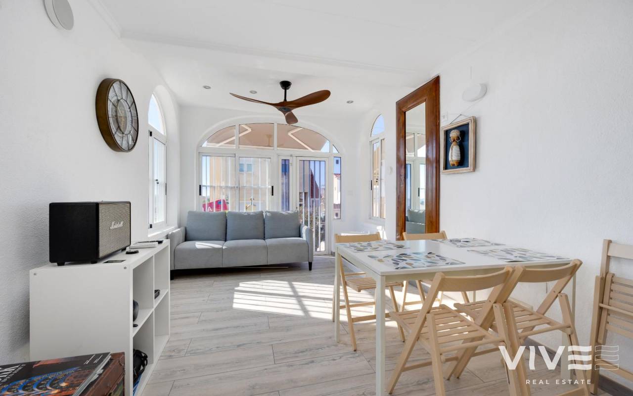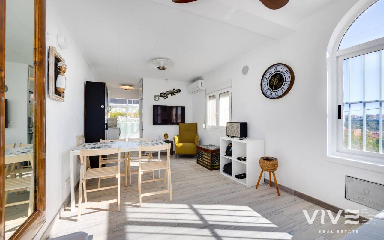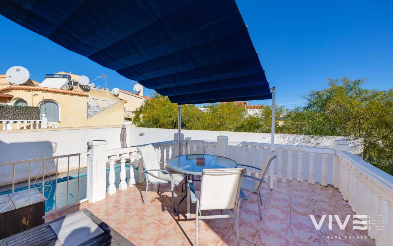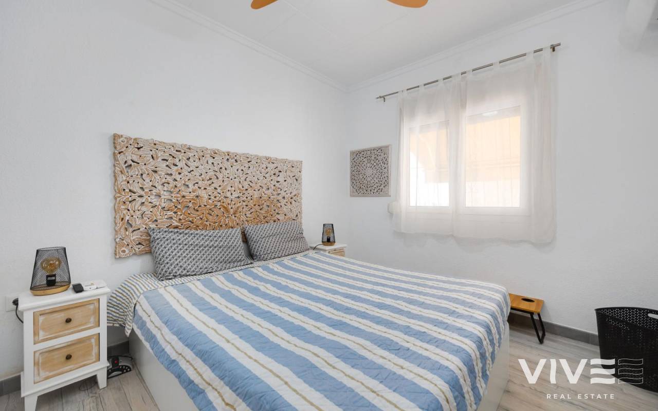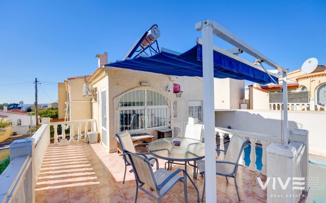 Bonita casa independiente con piscina privada situada en la tranquila y demandada urbanización La Marina. La vivienda cuenta con 51 m² construidos sobre una amplia parcela de 257 m², ofreciendo privacidad, comodidad y espacios exteriores ideales para disfrutar del clima mediterráneo.Se trata de un modelo Rosa ampliado, que dispone de 2 dormitorios y 1 baño, y que ha sido recientemente reformado, presentando un aspecto moderno, acogedor y listo para entrar a vivir.Uno de sus grandes atractivos es su sistema de energía solar, compuesto por 14 paneles solares con batería física de 7,5 kW, lo que proporciona un estilo de vida más eficiente, sostenible y con un importante ahorro energético.En el exterior encontramos una fantástica piscina privada, perfecta para disfrutar durante todo el año, además de una gran zona de almacenamiento bajo la terraza, muy práctica para guardar herramientas, bicicletas o mobiliario exterior.La propiedad está muy bien ubicada, cerca de todas las comodidades de la urbanización: centro médico, comercios, bares, restaurantes y supermercados, y a tan solo 4 km de las hermosas playas de la zona.Una excelente oportunidad tanto como vivienda habitual, casa de vacaciones o inversión en una de las zonas más populares de la Costa Blanca.