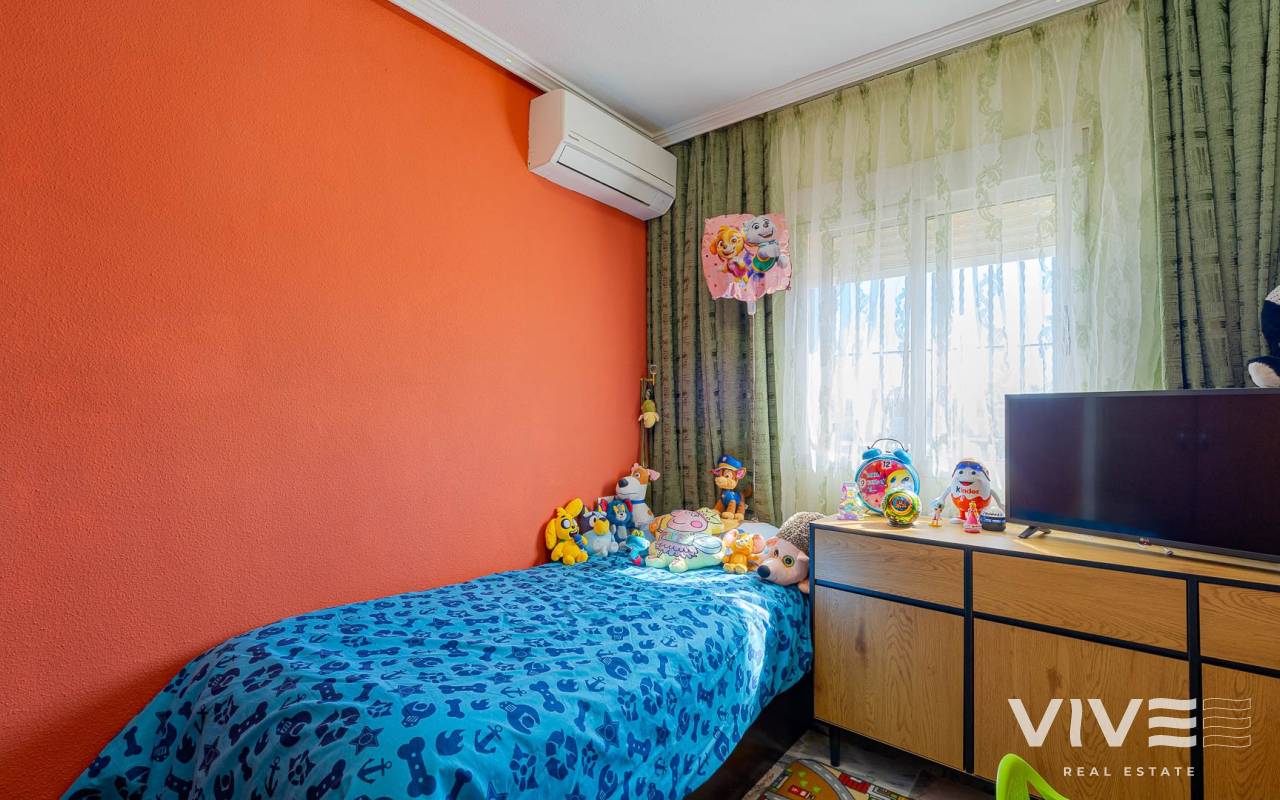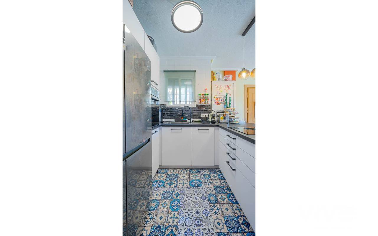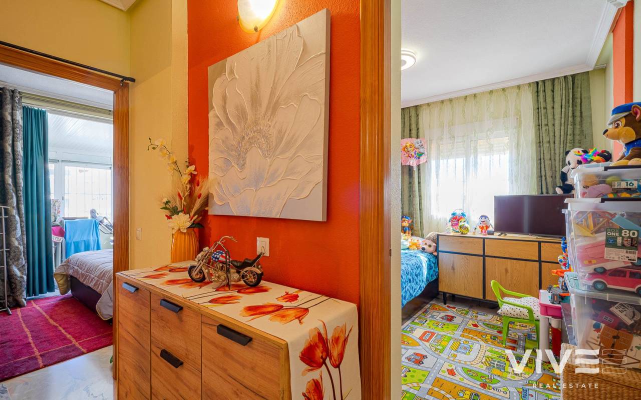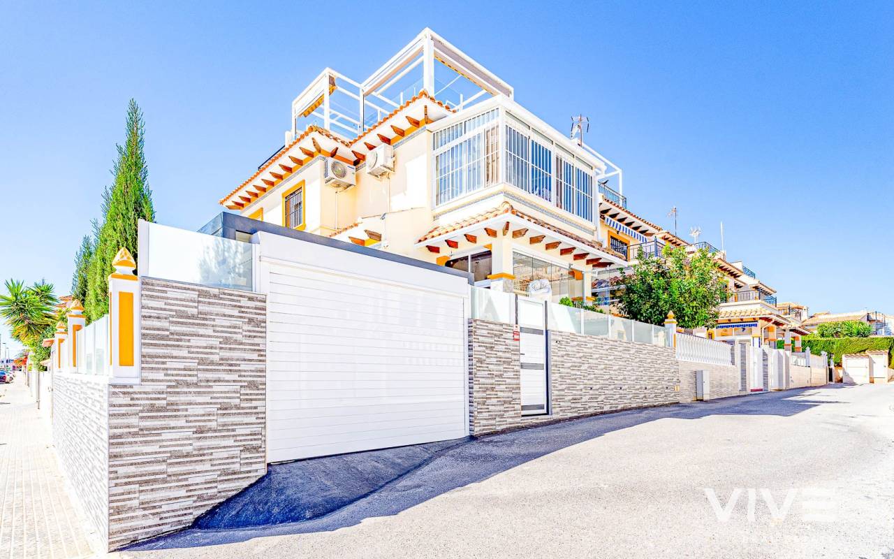 Este elegante adosado con reforma moderna está ubicado en la prestigiosa zona de Punta Prima, en la costa de Costa Blanca, a poca distancia a pie del mar y de las playas de Orihuela Costa. La zona destaca por su infraestructura desarrollada, ambiente acogedor y proximidad a todos los servicios necesarios: restaurantes, tiendas, farmacias y zonas de paseo, lo que la convierte en un lugar ideal tanto para vivir como para disfrutar de las vacaciones. La vivienda ha sido recientemente renovada con materiales de alta calidad, ofreciendo un estilo moderno, elegante y confortable. El adosado cuenta con una amplia parcela con aparcamiento y trastero, así como una distribución funcional en dos plantas. Al entrar, encontrará una terraza acristalada que conduce a un luminoso salón-comedor y una cocina totalmente equipada. Dispone de 2 acogedores dormitorios, un baño moderno y un aseo de invitados. Una de sus mayores ventajas es el solárium privado con vistas al mar, perfecto para disfrutar del sol durante todo el año. Los residentes pueden disfrutar de una gran piscina comunitaria. A tan solo unos minutos en coche se encuentra el mayor centro comercial de la zona, La Zenia Boulevard, con una amplia oferta de tiendas y ocio. Una oportunidad ideal como vivienda habitual, casa de vacaciones o inversión en la soleada costa de España.