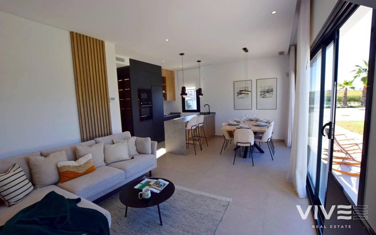 APARTAMENTOS DE OBRA NUEVA EN EL CAMPO DE GOLF DE CONDADO DE ALHAMA Complejo residencial de villas y apartamentos de nueva construcción en Condado de Alhama. Los 8 hermosos apartamentos se distribuyen entre planta baja, primera, segunda y tercera, con dos viviendas en cada planta y ascensor para pasar de un nivel a otro. Disponen de varias piscinas comunitarias, plaza de aparcamiento exterior para cada apartamento, trastero y terraza con cocina de verano. Las viviendas de la última planta tienen un solarium. Las dos viviendas de la planta baja tienen 3 dormitorios y 2 baños completos y el resto de las viviendas tienen 2 dormitorios y 2 baños completos también. Las viviendas han sido diseñadas con un estilo contemporáneo y un concepto abierto, compuesto por una cocina equipada y un salón-comedor. La promoción se encuentra en el Condado de Alhama, Murcia, dentro de un complejo turístico de lujo, con zonas deportivas y rodeado de naturaleza, todos los servicios, y varios Campos de Golf. La vivienda cumplirá con los más altos estándares y estará dotada de: Piscinas comunitarias con amplias zonas verdes. Cocina completamente amueblada y equipada con horno y microondas elevados y en columna, nevera y lavavajillas integrados, placa de inducción y campana extractora. Iluminación: en el interior de la vivienda (comedor, cocina, pasillos y baños), así como en las zonas exteriores. Armarios forrados con cajones y estantes. Cuartos de baño totalmente equipados con mueble de lavabo, inodoro suspendido, espejo, ducha mural y mamparas de ducha. Preinstalación de aire acondicionado por conductos. Cocina de verano en las terrazas. Solarium en las plantas superiores. Plaza de aparcamiento exterior con trastero. Ascensor (desde la planta baja hasta la 3ª planta). Condado de Alhama Golf Resort es un fantástico complejo de golf con muchas instalaciones y servicios. Un centro comercial, un centro deportivo, una variedad de bares y restaurantes, supermercados y más de 25 piscinas y jardines comunitarios. Condado de Alhama Golf Resort tiene su propio campo de golf diseñado por Jack Nicklaus y está a sólo 15 minutos de las hermosas playas de Bolnuevo y Mazarrón. Mazarrón tiene más de 35 km de costa, gran parte de la cual es costa virgen. Numerosas playas de la Bahía de Mazarrón han sido galardonadas con la Bandera Azul por su calidad. Condado de Alhama Golf Resort está a sólo 20 minutos del nuevo aeropuerto internacional de Corvera.