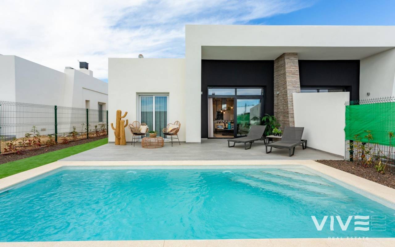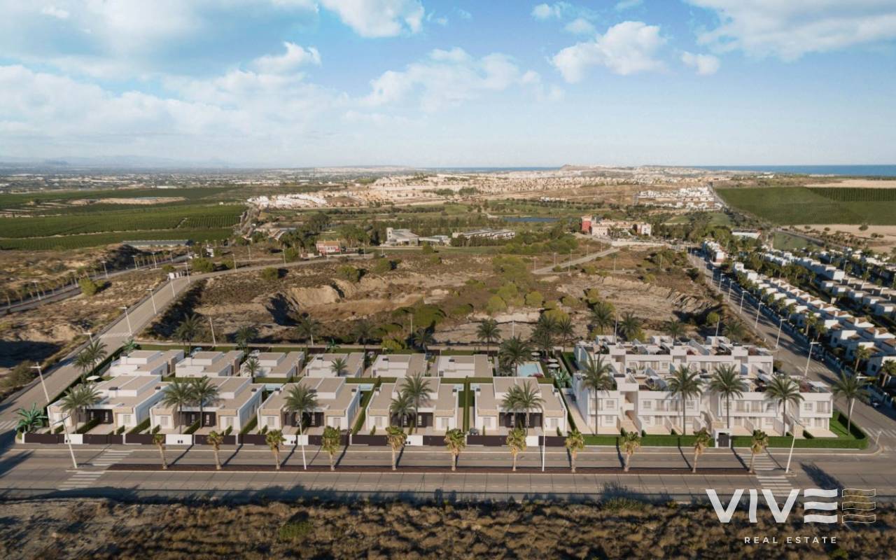 Villas pareadas de obra nueva con piscina privada en La Finca Golf Resort, Algorfa Viviendas exclusivas en una prestigiosa comunidad de golf Situadas en el famoso La Finca Golf Resort en Algorfa, Costa Blanca Sur, estas villas pareadas a estrenar ofrecen la combinación perfecta de diseño moderno, comodidad y estilo de vida mediterráneo. Rodeadas de naturaleza y tranquilidad, este entorno residencial ofrece un ambiente apacible sin renunciar a la proximidad a todos los servicios esenciales y opciones de ocio. Diseño elegante en una sola planta Cada villa, de 105 m2 construidos en parcelas desde 450m2, se distribuye en una sola planta y cuenta con 3 amplios dormitorios con armarios empotrados. Los 2 cuartos de baño, uno de ellos ensuite, equipados con espejos, duchas a ras de suelo con mamparas de cristal. La cocina abierta al salón con barra de desayuno se integra a la perfección con la sala de estar y el comedor, creando un espacio luminoso y funcional. Una zona de lavandería independiente añade comodidad a la vida diaria. Una escalera exterior da acceso al amplio solárium privado en cubierta. Aire acondicionado por conductos totalmente instalado. Vida al aire libre con piscina privada y jardín Las grandes puertas correderas de cristal conectan el salón con la terraza y el jardín, donde encontrará una piscina privada, el escenario ideal para disfrutar de las cálidas tardes mediterráneas. Ubicación privilegiada en la Costa Blanca La Finca Golf Resort es uno de los campos de golf más prestigiosos de la región y ofrece a los residentes un estilo de vida rodeado de naturaleza, deporte y relajación. La zona de Algorfa es conocida por su tranquilidad y encanto, a la vez que se encuentra a poca distancia en coche de playas, centros comerciales y atracciones culturales. Distancias clave desde las villas: Club de golf La Finca: a poca distancia a pie Playas de Guardamar del Segura: 20 km Centro comercial Zenia Boulevard: 15 km Aeropuerto de Alicante: 40 km Aeropuerto de Murcia: 55 km Torrevieja: 20 km Lo mejor del estilo de vida mediterráneo Estas villas combinan la tranquilidad de un entorno natural con la comodidad de la vida moderna, lo que las hace ideales como residencia permanente, refugio vacacional o inversión. Con acabados de alta calidad, espacios exteriores privados y una ubicación privilegiada cerca del golf y las playas, ofrecen todo lo necesario para una vida privilegiada en la Costa Blanca. Póngase en contacto con nosotros hoy mismo para obtener más información o concertar una visita y descubrir su nueva villa en La Finca Golf Resort en Algorfa.