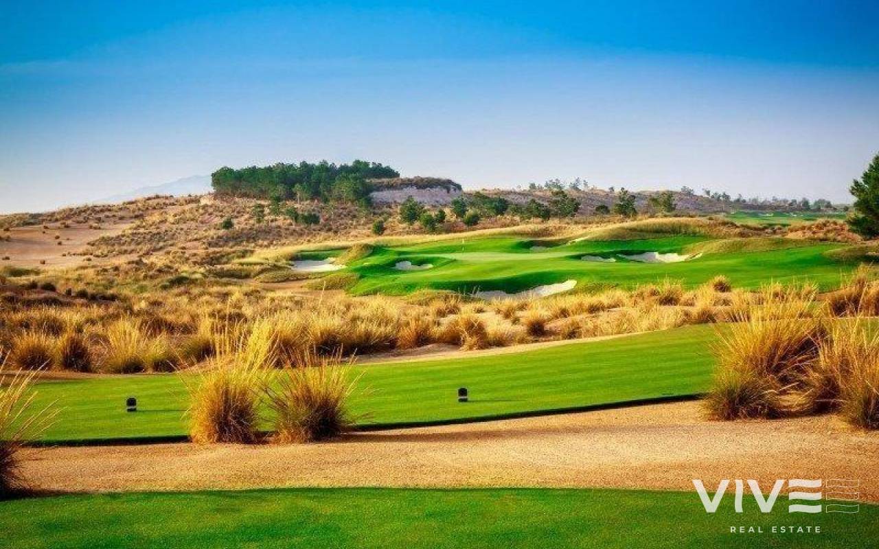 VILLAS DE OBRA NUEVA EN CONDADO DE ALHAMA CAMPO DE GOLF Complejo residencial de obra nueva de villas en Condado de Alhama Golf Resort. Villas con 3 dormitorios, 2 baños, cocina americana con salón, armarios empotrados, terraza, solárium privado y plaza de aparcamiento en el jardín. Todas las villas incluyen piscina privada de 21 m2. INCLUIDO en el precio: - PLAZA DE APARCAMIENTO ASIGNADA en el jardín privado. - SOLARIUM con escalera exterior. - BAÑOS: las mamparas de ducha, los lavabos, los espejos y la iluminación LED empotrada en el falso techo. - COCINA: la campana extractora, la iluminación LED empotrada en el techo. - Preinstalación de AIRE ACONDICIONADO. - ARMARIOS EMPOTRADOS forrados. - PERSIANAS ELÉCTRICAS. - Sistema de AEROTERMIA. - INSTALACIÓN DE SUAVIZADOR DE AGUA. - PUNTO DE CARGA para instalación de VEHÍCULOS ELÉCTRICOS E HÍBRIDOS. - PISCINA PRIVADA. Situado en el complejo privado y vigilado del Resort de golf de Condado de Alhama, entre Alhama de Murcia y Mazarrón. Condado de Alhama Golf Resort es un fantástico Resort de Golf con muchas instalaciones y servicios . Un centro comercial, un centro deportivo, una gran variedad de bares y restaurantes, supermercados y más de 25 piscinas y jardines comunitarios. Condado de Alhama Golf Resort tiene su propio campo de golf diseñado por Jack Nicklaus y está a sólo 15 minutos de las hermosas playas de Bolnuevo y Mazarrón. Mazarrón tiene más de 35 km de costa, gran parte de la cual es costa virgen. Numerosas playas de la Bahía de Mazarrón han sido galardonadas con la Bandera Azul por su calidad. Condado de Alhama Golf Resort está a sólo 20 minutos del nuevo Aeropuerto Internacional de Corvera.