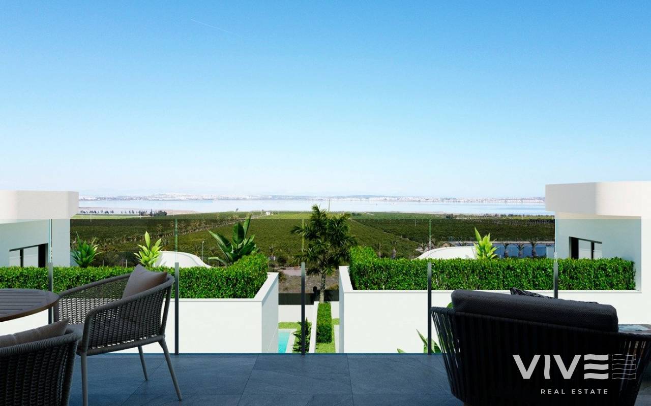RESIDENCIAL DE OBRA NUEVA EN LOS BALCONES, TORREVIEJA Complejo residencial de nueva construcción de pareados y bungalows situado en Los Balcones con vistas al lago rosa. Los bungalows de planta alta disponen de 2 dormitorios, 2 baños, cocina americana con amplio salón, armarios empotrados, terraza, solarium privado y plaza de aparcamiento subterráneo. Nuevo y exclusivo residencial con grandes zonas comunes; jardines, jardín-gimnasio, parque infantil, 2 grandes piscinas comunitarias - una de ellas para adultos, y la otra para niños. Los Balcones es un pequeño pueblo situado cerca del sur de Torrevieja. Torrevieja es una ciudad española en la provincia de Alicante, en la Costa Blanca. Es conocida por su clima y su costa típicamente mediterráneos. Cuenta con paseos marítimos con complejos turísticos a lo largo de sus playas de arena. El pequeño Museo del Mar y la Sal alberga exposiciones sobre la historia pesquera y salinera de la ciudad. En el interior, el Parque Natural de las Lagunas de La Mata-Torrevieja cuenta con senderos y dos lagunas saladas, una rosa y otra verde. El aeropuerto de Alicante se encuentra a 40 minutos y el de Murcia a una hora.