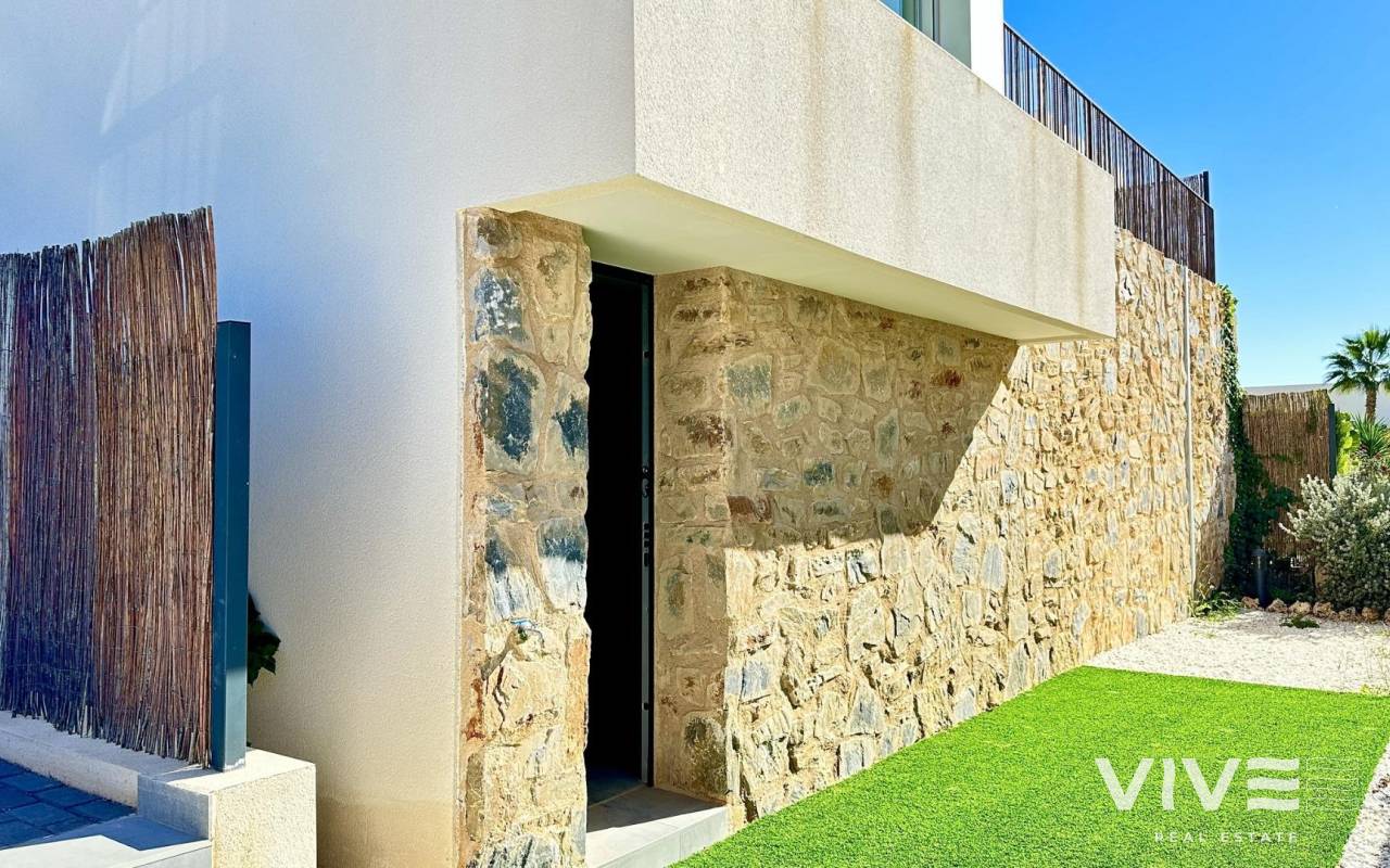 VILLA DE DISEñO MODERNO CON VISTAS AL GOLF Villa de diseño en uno de los lugares más exclusivos de la Costa Blanca. Con unas espectaculares vistas sobre la Finca golf Resort, esta vivienda moderna con toques Mediterráneos de 4 dormitorios y 3 baños, te traslada a un rincón privilegiado en el que disfrutar del buen clima en sus más de 150 metros cuadrados y su sótano de más de 80m2. Destaca por el uso de las mejores calidades además de un amplio jardín que nos permite disfrutar de una privacidad absoluta y una piscina privada de ensueño que hará de cada momento un recuerdo inolvidable. Situadas en el campo de golf La Finca en Algorfa, a 20 min de las estupendas playas de Guardamar.