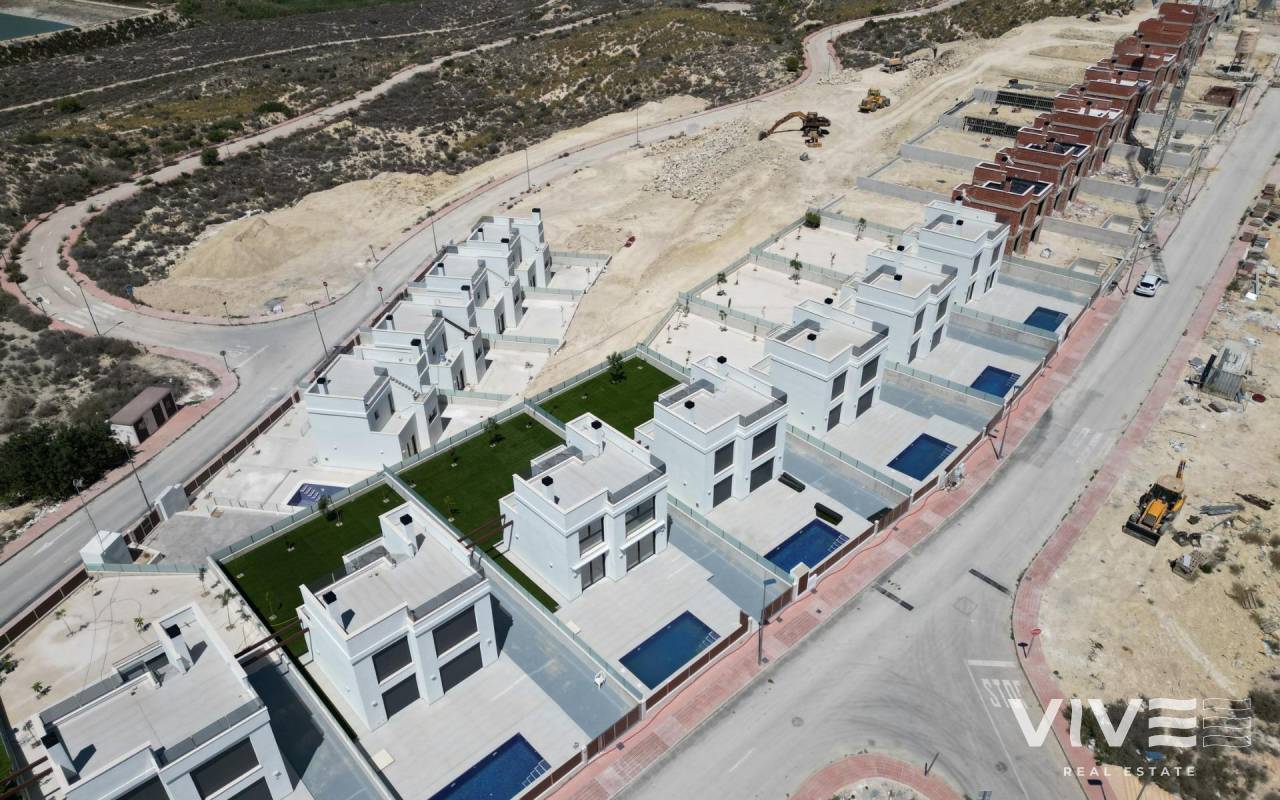 Promoción de villas de obra nueva independientes, con piscina privada y acabados modernos. Las viviendas constan de 2 plantas y también se tiene acceso al solárium con estupendas vistas al mar. En amplias parcelas de alrededor de 550 m2. Su emplazamiento elevado brinda unas estupendas vistas abiertas a las montañas, a la ciudad de Alicante y al mar. Estratégicamente situadas a 1 km del campo de golf Bonalba, a 3.5 km de las playas de San Juan y Muchavista, a 9 km de la ciudad de Alicante y a 20 km del aeropuerto internacional de Alicante. Disfrute de una temperatura media anual de 20ºC y 300 días de sol al año en un entorno con rica gastronomía y gran oferta de ocio.
