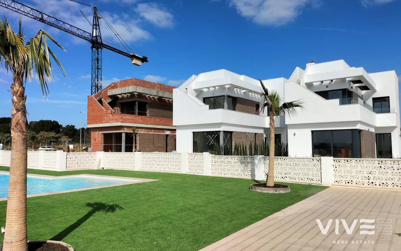 VILLAS DE OBRA NUEVA EN PILAR DE LA HORADADA EN EL CAMPO DE GOLF Exclusivo y lujoso proyecto de villas en Lo Romero golf, Pilar de la Horadada. Estos chalets de Obra Nueva con parking privado y piscina situados en el tranquilo y apacible campo de golf. Lo Romero será el hogar ideal para usted. Villas de 3 dormitorios y 3 baños, con armarios empotrados y orientación sureste, además, están a sólo 100 m del campo de golf y a 6 km de la playa, perfectas para disfrutar de lo que la Costa Blanca ofrece. Pilar de la Horadada es un típico pueblo español situado en la parte más meridional de la Costa Blanca. La gran calle principal tiene supermercados, muchas tiendas, restaurantes y bares y algunas plazas encantadoras. Las hermosas playas de Torre de la Horadada y Mil Palmeras con paseo marítimo de arena fina está a sólo 5 minutos. Lo Romero Golf es el campo perfecto para los apasionados del golf y la Isla del Golf es un campo ideal para los golfistas de todos los niveles. Los aeropuertos de Corvera (Murcia) y Alicante están a 40 y 55 minutos respectivamente.