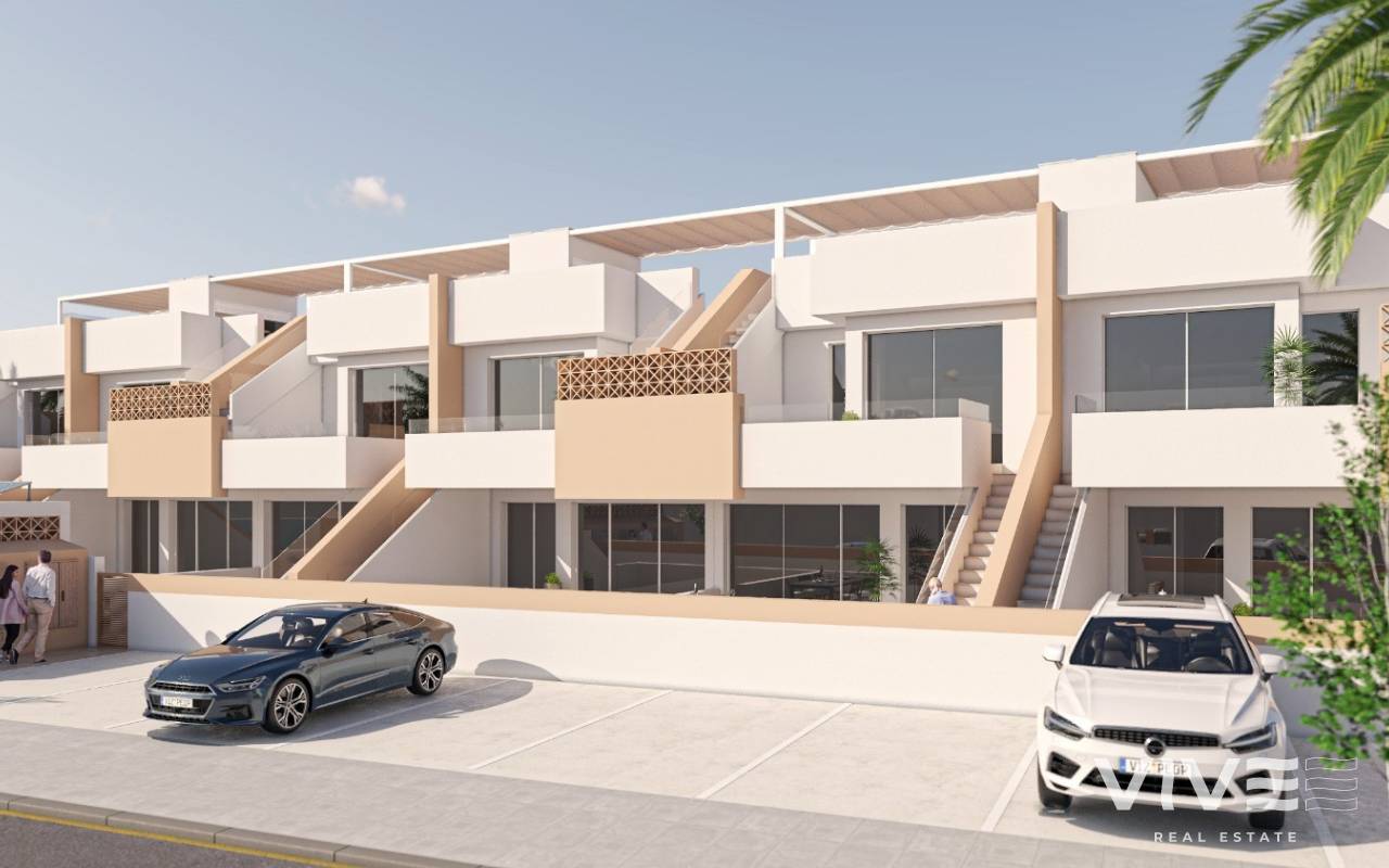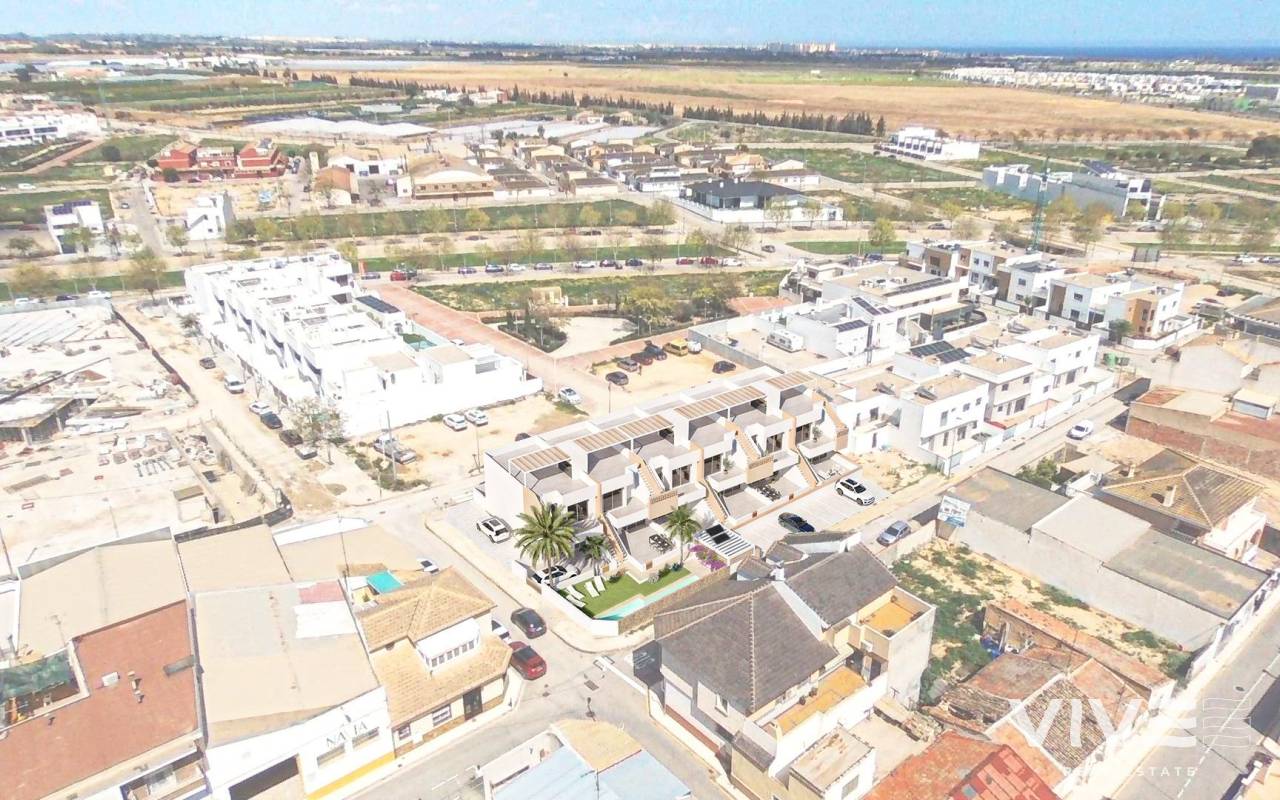 Bungalows de nueva construcción en Pilar de la Horadada, cerca de la playa y del centro de la ciudad Vida contemporánea en el corazón de la Costa Blanca Bienvenido a un complejo residencial boutique de 12 bungalows de nueva construcción situado en Pilar de la Horadada, una vibrante ciudad costera en el extremo sur de la Costa Blanca. Esta ubicación privilegiada ofrece la combinación perfecta de la tranquila vida mediterránea y la comodidad, con todos los servicios esenciales, tiendas, restaurantes y comodidades a poca distancia. Las hermosas playas de arena de Torre de la Horadada y Mil Palmeras están a solo 3 km, ideales para relajarse en la playa o practicar deportes acuáticos. Opción de bungalows en planta baja o en planta superior Este exclusivo complejo ofrece dos tipos de viviendas modernas que se adaptan a su estilo de vida: Bungalows en planta baja con 3 dormitorios, 2 baños y amplias terrazas privadas delantera y trasera con acceso directo a la piscina y los jardines comunitarios. Bungalows en la planta superior con 2 dormitorios, 2 baños y un amplio solárium privado en la azotea, con cocina de verano, pérgola y aseo de invitados. Todas las viviendas cuentan con luminosas zonas de estar de planta abierta, cocinas totalmente equipadas, aire acondicionado por conductos y aparcamiento privado. Los dormitorios incluyen armarios empotrados y los baños cuentan con calefacción por suelo radiante para mayor comodidad. Características premium para una vida mediterránea moderna Las viviendas están diseñadas con acabados de alta calidad y características prácticas, que incluyen: Puerta principal blindada con acabado de aluminio Persianas eléctricas en salón y dormitorios Sistema de agua caliente aerotérmica Electrodomésticos de cocina de BALAY o equivalente Soláriums en la azotea con césped artificial, ducha exterior, iluminación y cocina de verano completa con lavavajillas, nevera pequeña, placa de inducción y extractor. Ubicación estratégica con excelente conectividad Pilar de la Horadada está bien conectada con los principales puntos de interés de la Costa Blanca y la Costa Cálida: Playas (Torre de la Horadada / Mil Palmeras) - 3 km Campo de golf Lo Romero - 6 km Aeropuerto de Corvera (Murcia) - 40 km Aeropuerto de Alicante - 55 km Centro comercial Zenia Boulevard - 14 km Puerto deportivo de San Pedro del Pinatar: 11 km Su hogar ideal bajo el sol Tanto si busca una escapada de vacaciones, una residencia para todo el año o una inversión de alquiler, estos bungalows en Pilar de la Horadada ofrecen una excelente relación calidad-precio en una de las localidades más deseables de la Costa Blanca. Póngase en contacto con nosotros hoy mismo para concertar una visita o solicitar más información.