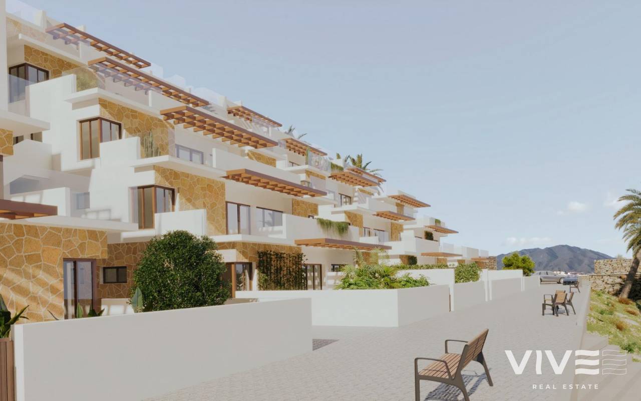Apartamentos de nueva construcción con vistas al mar en Vera Playa, Almería Descubra esta excepcional promoción residencial en Vera Playa, que ofrece 27 modernos apartamentos en su primera fase. Diseñado para combinar comodidad, funcionalidad y espectaculares vistas al mar Mediterráneo, este proyecto es ideal para quienes buscan una vivienda en la Costa de Almería con estilo y comodidad. Viviendas modernas con vistas al mar Cada apartamento ha sido cuidadosamente diseñado para maximizar la luz natural y la vida al aire libre. Las opciones incluyen distribuciones de 1, 2 y 3 dormitorios, con plantas bajas con jardines privados, plantas intermedias con amplias terrazas y áticos con soláriums privados. Gracias al diseño en terrazas, todas las viviendas disfrutan de terrazas descubiertas con impresionantes vistas al mar. Acabados de calidad y viviendas totalmente equipadas Todas las propiedades están completamente amuebladas y equipadas, listas para entrar a vivir. Las características incluyen: Cocina amueblada con electrodomésticos incluidos Baños completos con accesorios modernos Sistema de aire acondicionado por conductos Plaza de aparcamiento privada y trastero Instalaciones comunitarias exclusivas Lo más destacado de este complejo residencial es su piscina comunitaria, rodeada de jardines paisajísticos, que crea el espacio perfecto para relajarse, tomar el sol y disfrutar en familia. Ubicación privilegiada en Vera Playa Vera Playa es conocida por sus largas playas de arena, su estilo de vida relajado y sus excelentes servicios. La urbanización se encuentra en una zona tranquila pero bien comunicada, con fácil acceso a los servicios y al transporte. Distancias clave: Playa: 700 m Desert Springs Golf Resort: 8 km Centro de Vera: 5 km Puerto deportivo y restaurantes de Garrucha: 6 km Parque comercial de Mojácar: 10 km Aeropuerto de Almería: 85 km (aprox. 1 hora) Estación de tren de alta velocidad AVE (en construcción): 3 km Una vivienda ideal o una oportunidad de inversión Tanto si busca una residencia permanente, un refugio para las vacaciones o una inversión segura, estos apartamentos de nueva construcción en Vera Playa ofrecen una excelente relación calidad-precio en uno de los destinos costeros más deseados de Almería. Haga de Vera Playa su nuevo hogar y disfrute de la combinación perfecta entre la vida moderna, las vistas al mar y el estilo de vida mediterráneo. Póngase en contacto con nosotros hoy mismo para concertar una visita y asegurarse la propiedad de sus sueños en la Costa de Almería.