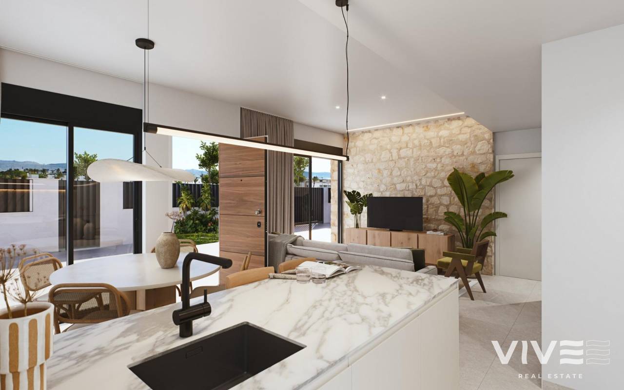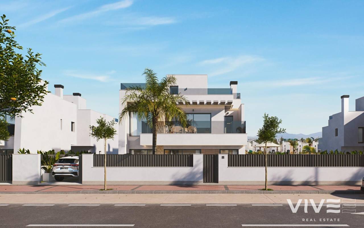 Modernas villas adosadas en Santa Rosalía Lake and Life Resort: un nuevo estándar de lujo mediterráneo Diseño contemporáneo inspirado en el Mediterráneo Descubra estas exclusivas villas adosadas situadas en el prestigioso Santa Rosalía Lake and Life Resort, un destino residencial único en la Costa Cálida. Inspiradas en la arquitectura mediterránea, estas villas combinan líneas limpias, luz natural y comodidad moderna para crear un entorno armonioso y elegante. Cada villa está diseñada para ofrecer un equilibrio perfecto entre lujo y relajación, lo que la hace ideal como residencia permanente, casa de vacaciones u oportunidad de inversión. Distribución espaciosa y acabados de alta gama Cada villa ofrece 220 m² de superficie habitable distribuidos en un sótano, dos plantas principales y un solárium en la azotea, situados en generosas parcelas de 295 m². Las viviendas cuentan con 4 dormitorios y 4 baños (3 en suite), lo que proporciona un amplio espacio para la familia y los invitados. La piscina privada con zona de jacuzzi, las amplias terrazas y el solárium en la azotea con cocina de verano y aseo invitan a disfrutar del excepcional clima de la región durante todo el año. Las especificaciones premium incluyen: Cocina totalmente equipada con electrodomésticos Bosch Baños con muebles, espejos, mamparas de ducha y calentadores de toallas Puerta de entrada blindada y puerta de acceso motorizada para vehículos Focos LED en todo el interior y el exterior Aire acondicionado por conductos (instalado en ambas plantas) Piscina privada con zona de jacuzzi 2 paneles solares fotovoltaicos para la eficiencia energética Cocina de verano en el jardín Planta subterránea con patio inglés para la luz natural y la ventilación Vida estilo resort en Santa Rosalía Santa Rosalía Lake and Life Resort es una comunidad privada y cerrada con seguridad las 24 horas, diseñada en torno a unas impresionantes 126 000 m² de zonas verdes. Los residentes disfrutan de senderos para caminar y montar en bicicleta, instalaciones deportivas, pistas de pádel y tenis, minigolf, jardines, parques para perros y zonas de ocio. La casa club y la pieza central del complejo, una impresionante laguna cristalina de 17 000 m² rodeada de playas de arena blanca y palmeras, ofrecen un auténtico estilo de vida inspirado en el Caribe. La laguna cuenta incluso con dos islas, una de ellas con su propio bar, y varios chiringuitos en la playa para comer de forma relajada. Ubicación privilegiada en la Costa Cálida La promoción goza de una ubicación céntrica dentro del complejo, cerca de la laguna y del club de playa. Se encuentra a menos de 4 km de la playa de Los Alcázares, a 15 minutos de Cartagena y a solo 22 km del aeropuerto internacional de Murcia. Los amantes del golf encontrarán varios campos de primera categoría a poca distancia en coche, mientras que los puertos deportivos, restaurantes y zonas comerciales locales completan la vibrante oferta de estilo de vida. Su exclusivo refugio mediterráneo le espera Experimente la combinación perfecta de lujo, comodidad y bienestar en el corazón de la Costa Cálida. Póngase en contacto con nosotros hoy mismo para concertar una visita y descubrir la villa de sus sueños en Santa Rosalía Lake and Life Resort.