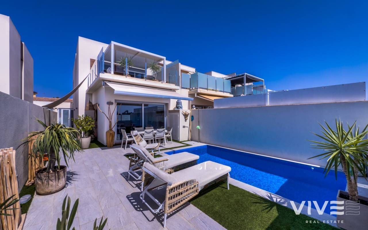 Esta villa en venta en Daya Vieja encaja con lo que muchos compradores buscan hoy: comodidad, espacio exterior y una ubicación bien conectada sin renunciar a la tranquilidad.