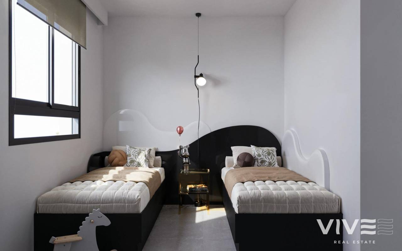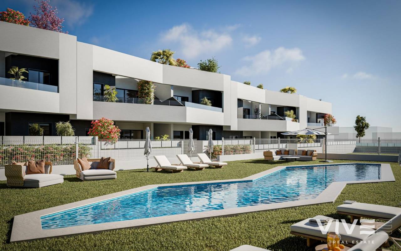 Bungalows Modernos de Obra Nueva en San Miguel de Salinas con 3 Piscinas Comunitarias Estilo de Vida Mediterráneo en un Entorno Natural Descubre este moderno residencial de bungalows de obra nueva a las afueras de San Miguel de Salinas, una localidad al sur de la provincia de Alicante, y a corta distancia andando a todos los servicios. Este encantador municipio combina la cercanía al mar con la tranquilidad de la naturaleza, convirtiéndose en un lugar ideal tanto para residencia habitual como para vacaciones. Opciones de Vivienda para Todos los Estilos de Vida El residencial ofrece apartamentos tipo bungalow con 2 o 3 dormitorios distribuidos en dos opciones: Planta baja con jardín privado y trastero Planta alta con solárium privado Cada vivienda ha sido diseñada con un enfoque moderno y funcional, proporcionando comodidad, luz natural y espacios exteriores para disfrutar del clima mediterráneo durante todo el año. Zonas Comunes para el Disfrute Familiar Este complejo residencial está completamente cerrado y dispone de excelentes zonas comunes: 3 piscinas comunitarias de gran tamaño para adultos y niños Más de 3.400 m² de zonas verdes ajardinadas Estas instalaciones hacen del residencial un espacio ideal para familias, parejas y jubilados que buscan calidad de vida en un entorno seguro y relajado. Calidades Modernas y Eficiencia Energética Las viviendas cuentan con materiales de alta calidad y acabados cuidados: Cocina completamente amueblada Carpintería exterior con rotura de puente térmico y doble acristalamiento Puerta de entrada blindada Muebles de baño incluidos Preinstalación de aire acondicionado por split en salón y dormitorios Excelente Ubicación Cerca de Golf, Playas y Servicios San Miguel de Salinas se sitúa estratégicamente cerca de zonas turísticas y naturales: Campos de golf como Vistabella, Las Colinas y Campoamor a menos de 10 km Playas de Orihuela Costa a 11 km Lagunas de Torrevieja y La Mata a solo 8 km Centro comercial La Zenia Boulevard a 9 km Aeropuerto de Alicante-Elche a 58 km (35 minutos en coche) Aeropuerto Internacional de Murcia a 63 km (1 hora en coche) Tu Nuevo Hogar en la Costa Blanca Estas viviendas representan una excelente oportunidad para quienes buscan calidad, comodidad y ubicación. Contáctanos ahora para más información o para agendar tu visita y dar el primer paso hacia tu vida en la Costa Blanca.
