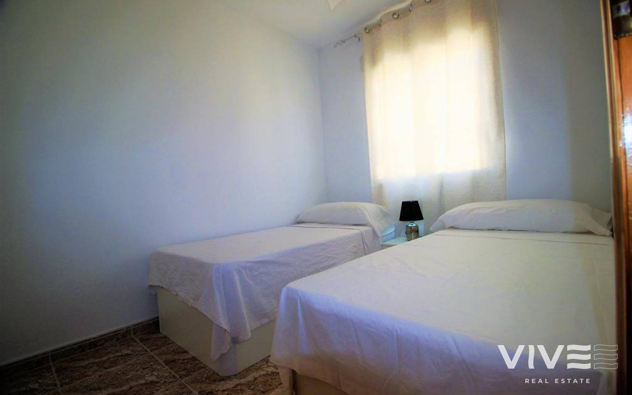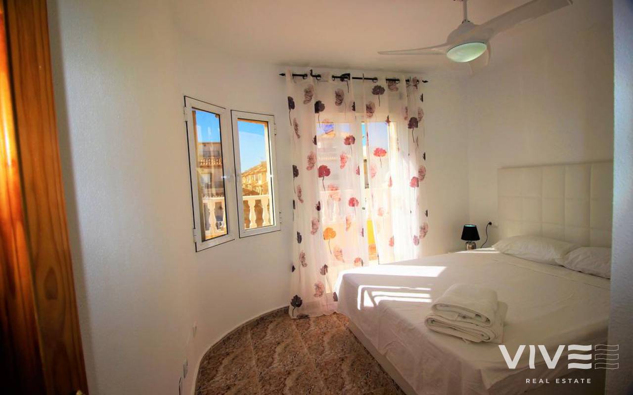 El bungalow Granito esta situado en La Zenia y tiene una gran terraza delantera con porche. Este casa cuenta con 2 dormitorios, un baño y un aseo, el gran salón tiene una parte comedor y la cocina esta completamente equipada. La terraza trasera esta usada como trastero. En el salón hay TV de pantalla plana y Wifi gratuida. En la parte de abajo también hay un aseo. Toda la casa tiene aire acondicionado. En la parte de arriba están los dormitorios, el de matrimonio tiene un gran balcón delantero, y un baño completo. BBQ hay para usar igual como muebles de jardín. La vista esta hacia la terraza. Esta urbanización cuenta con un bonito jardín y una piscina comunitaria.Esta a 1,5 km del centro comercial Zenia Boulevard, en Playas de Orihuela.