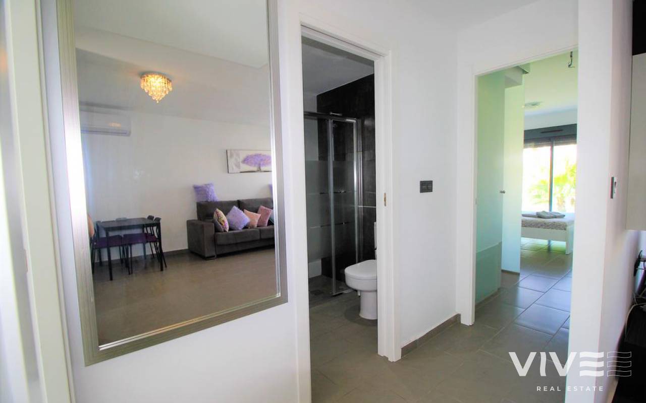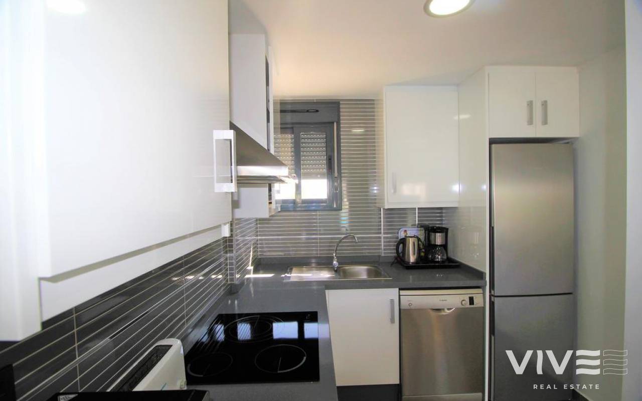 Oasis Beach 126 es un elegante y moderno apartamento de planta alta  con 2 dormitorios y 2 baños. El apartamento está totalmente climatizado. El gran y elegante salón tiene una zona de comedor, televisión de pantalla plana, una gran terraza para relajarse con vistas a la piscina comunitaria y al parque infantil desde la terraza conduce una escalera hacia el   solarium que ocupa toda la superficie habitable, y se puede disfrutar del sol todo el día y relajarse. La cocina está completamente equipada. El apartamento está muy cerca del gran centro comercial La Zenia Boulevard con su variedad de restaurantes, tiendas y supermercados. El aeropuerto más cercano está en Alicante, a unos 45 minutos en coche, Torrevieja está a 10 minutos en coche.