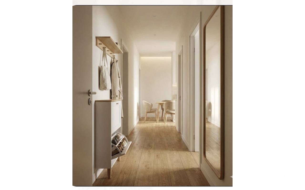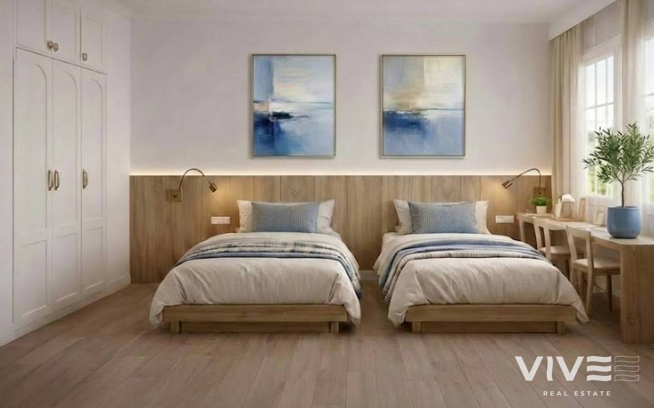 Około 89 m² powierzchni zabudowanej, 3 sypialnie, 2 łazienki z ogrzewaniem podłogowym, oddzielna kuchnia, 2 balkony oraz prywatne solarium z kuchnią letnią.