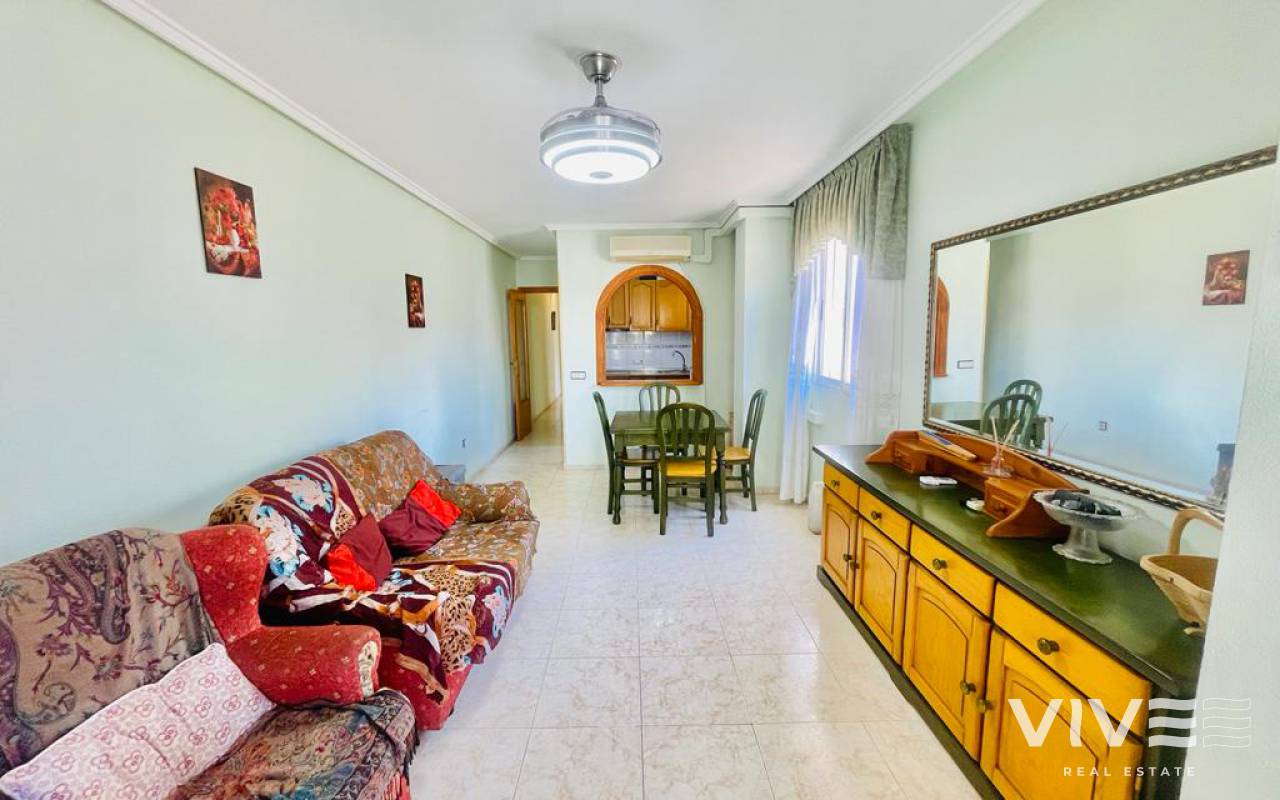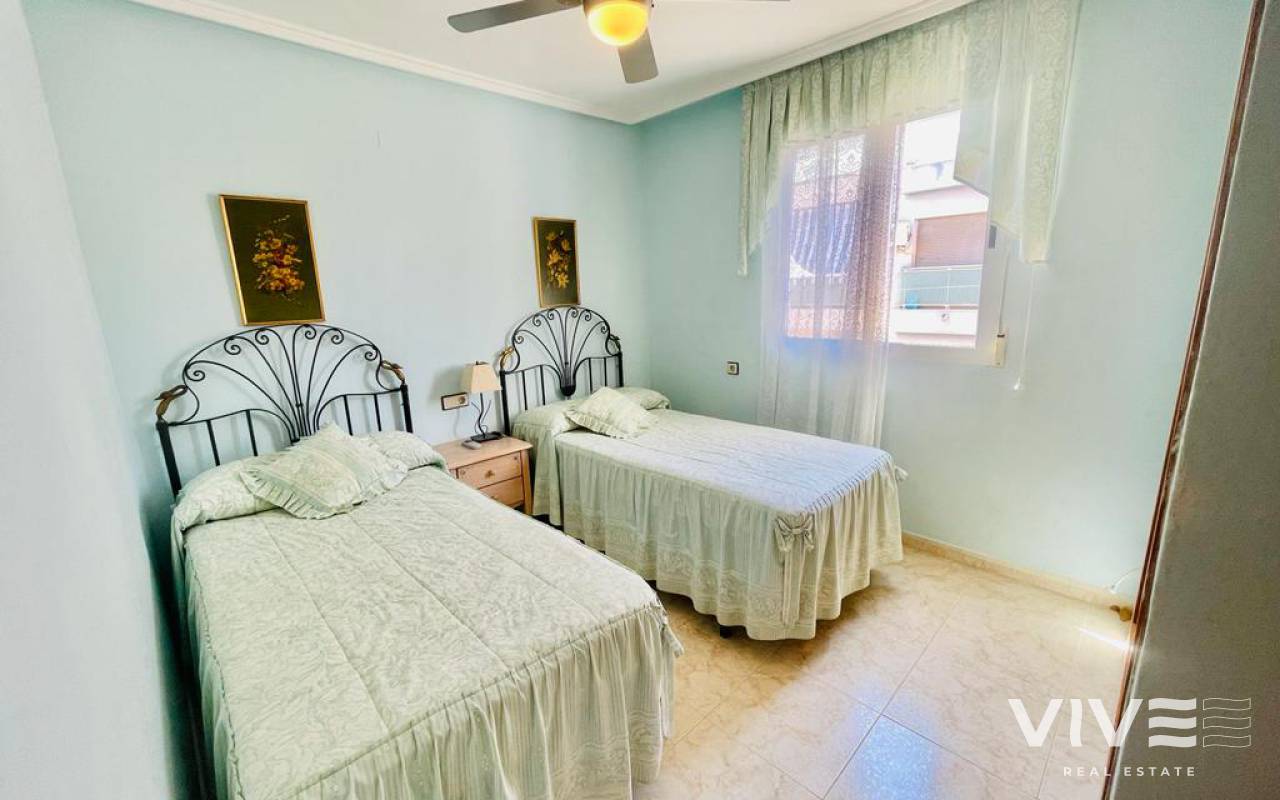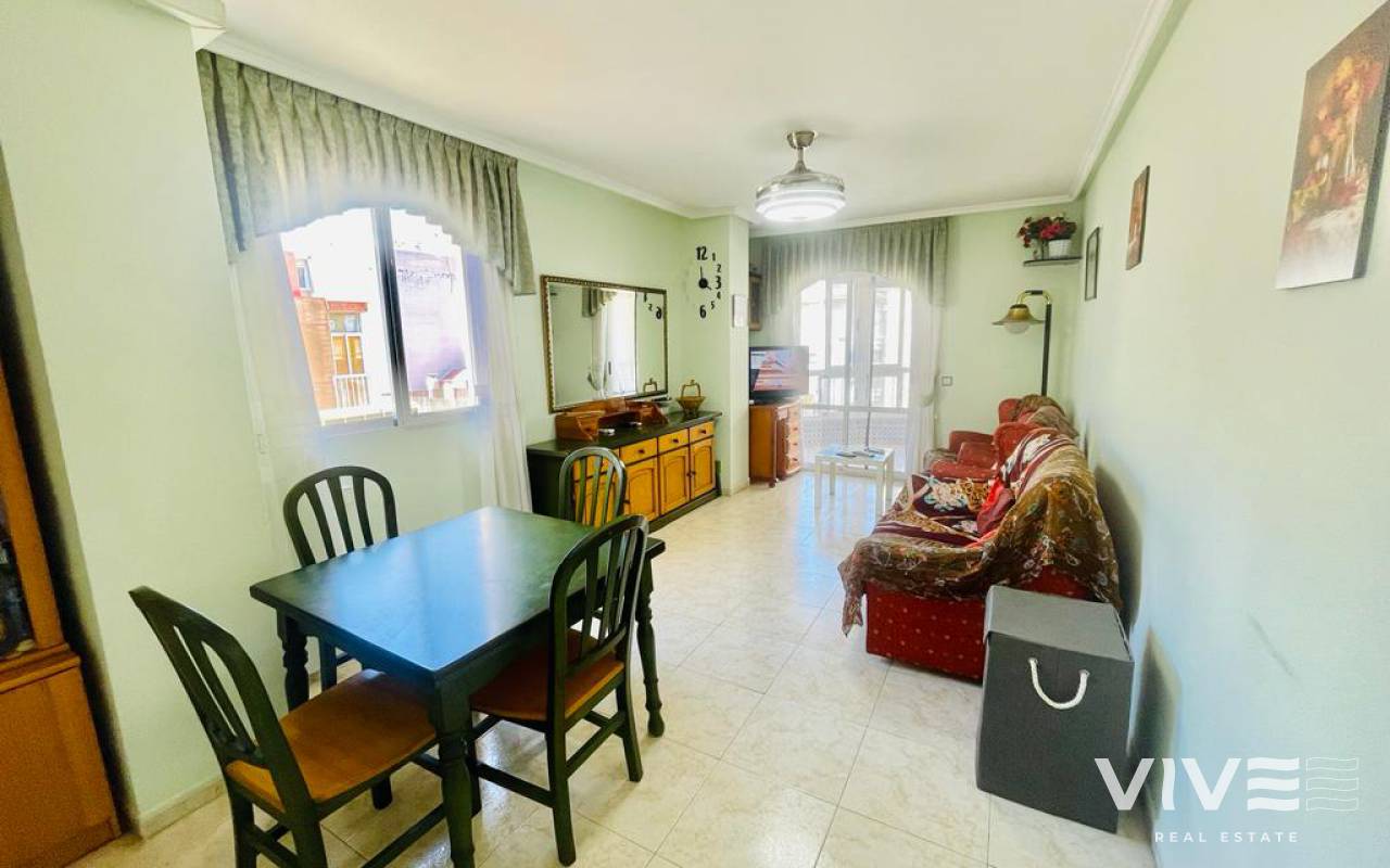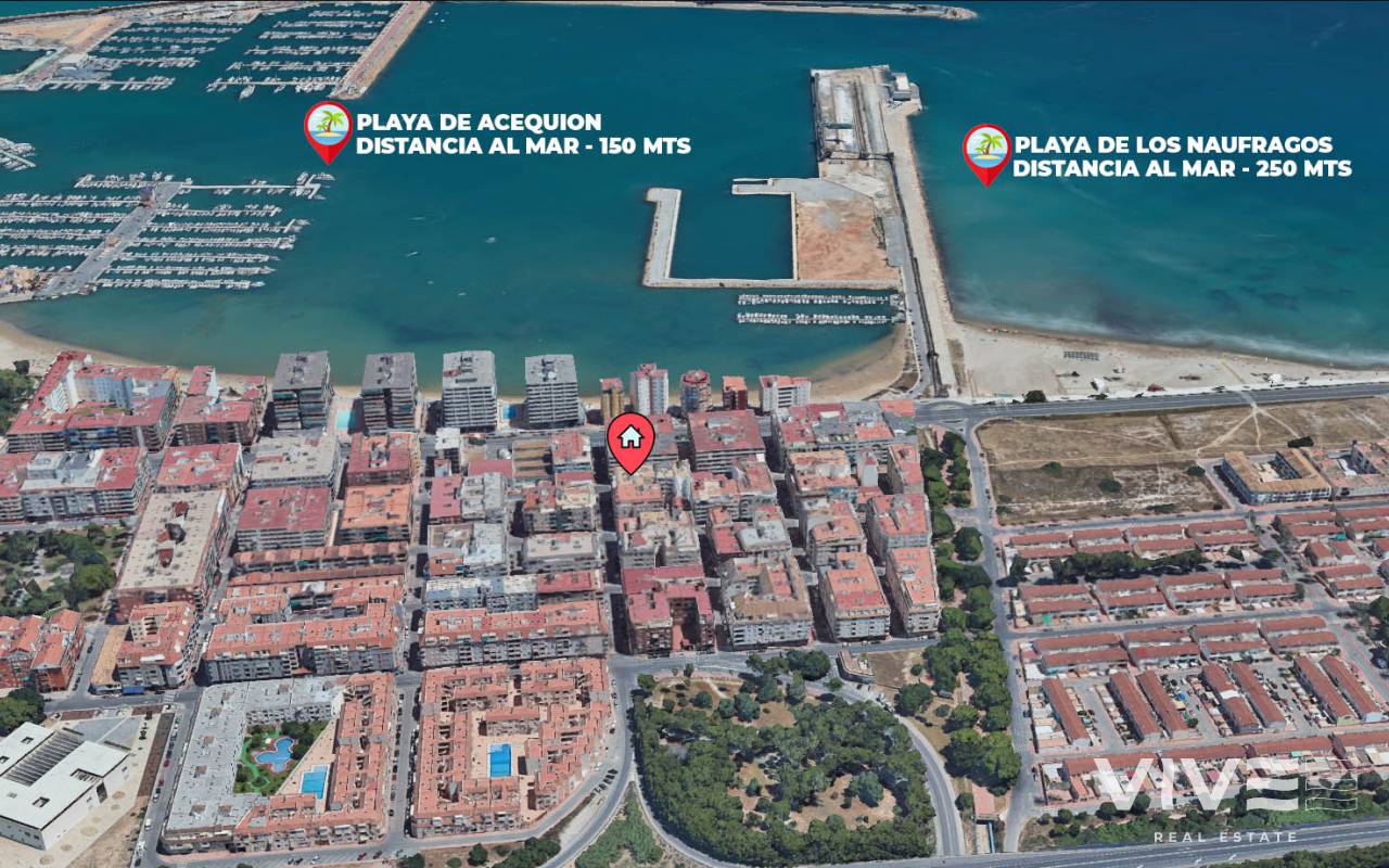 Beautiful flat of 86 m2 distributed in 2 bedrooms, 1 bathroom, open plan kitchen, living room with a large west facing terrace overlooking the sea.The property is located 150 meters from the acequion beach and 250 meters from the beach of the castaways, the acequion area is surrounded by all kinds of services such as restaurants, pharmacies, health centre, bars, supermarket, etc.IBI. 249€. COMMUNITY .90€ QUARTERLY