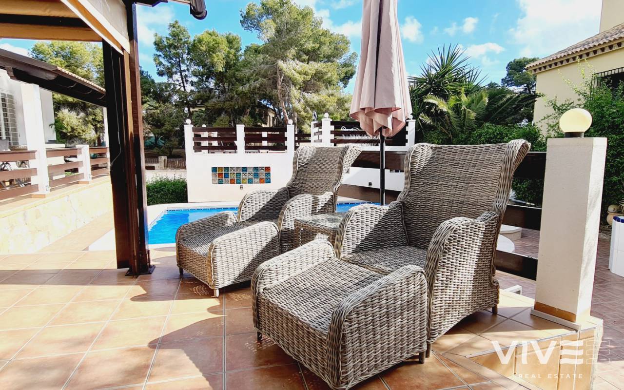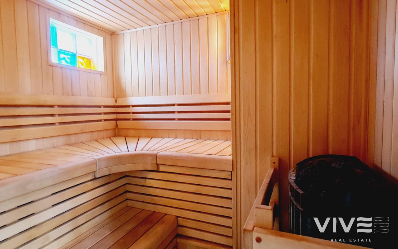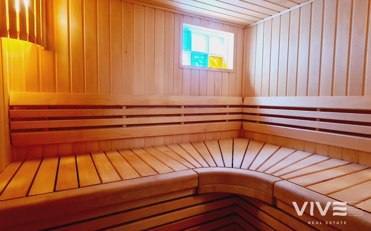 Villa with heated pool and counter-current swimming system, distributed on the main floor in two bedrooms, two bathrooms (two of them with en-suite bedrooms), dressing room, separate kitchen and a large living room with access to a large porch with awnings and heating and barbecue area where you can enjoy the sun with your family and friends. On the plot you also have two private flats with bathrooms and kitchen areas and air conditioning, a large storage room, a quality Finnish sauna, garden with fruit trees and rose bushes, an area to have a coffee in the morning and a solarium.