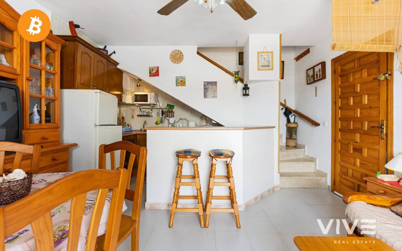 Discover your perfect holiday retreat in Orihuela Costa, in the exclusive area of Playa Flamenca! This charming bungalow awaits you with its exceptional features and cosy atmosphere that will make you feel right at home. With 51 square metres of living space, this property offers you everything you need to enjoy a peaceful life by the sea. This property has a double bedroom and a complete bathroom, ready for you to move in immediately, all on the first floor. The property is in excellent condition, meaning you won't have to worry about repairs or renovations. The fully equipped kitchen will allow you to prepare delicious meals and enjoy special moments with your loved ones. The interior features quality details, such as the wooden interior carpentry, which adds warmth and elegance to every corner. The northeast orientation provides you with abundant natural light for a large part of the day, creating a bright and welcoming atmosphere. But that's not all. This bungalow comes with a list of extras that will make your life even more comfortable: built-in wardrobes to keep your belongings tidy and a telephone line to stay connected. What's more, the furniture is included, so you can move in immediately and start enjoying your new home without any hassle. The property is located in an urbanization with a communal swimming pool, ideal for cooling off during the hot summer days. It also has a large terrace where you can relax and enjoy the Mediterranean climate. The location of this bungalow is exceptional. You will find everything you need within easy reach, from buses and supermarkets to shopping centres and medical centres. The proximity to the coast will allow you to enjoy beautiful beaches and water activities. Golf lovers will be delighted with the proximity of the golf courses in the area. We are "Crypto-Friendly", if you are interested in buying with Crypto-Currencies, do not hesitate to ask us for more information.