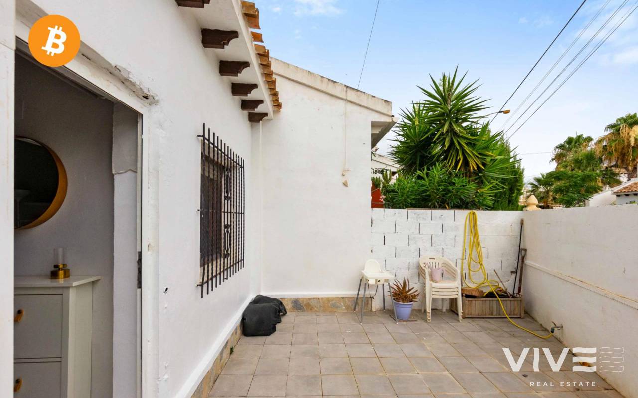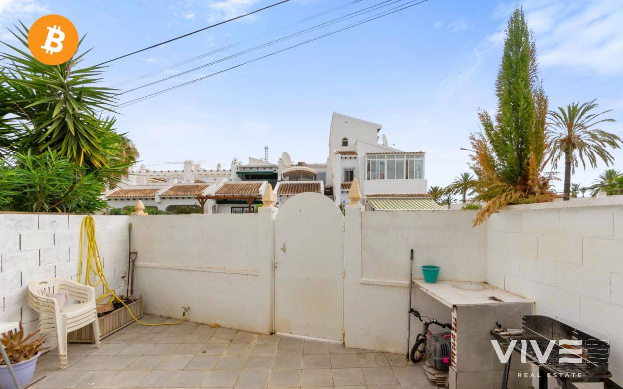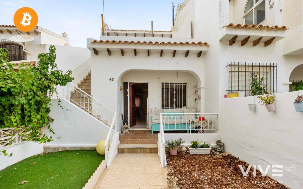 Charming Mediterranean-style townhouse in Villamartin (Orihuela Costa), very close to the Villamartín golf course and Campoamor golf club, perfect for living all year round due to its proximity to all basic services, supermarkets, cafeterias, the La Fuente is located a few meters from the house where you can find a variety of shops, pubs and a variety of restaurants. The house is located in a very quiet urbanization, surrounded by green areas, perfect for walking, it has 67 m2 built on the ground floor, you enter from the street to an incredible 110 m2 garden, perfect for enjoying the outdoors all year round , It is distributed in a living-dining room, a spacious double room, a bathroom and a kitchenette. It has an exit from the living room to the outside porch with another small garden facing south. In the front area of the house with access to the upper floor, you can find a staircase with an entrance to the first floor (it does not appear in the deed), a spacious room with a bathroom, which can be used as an apartment attached to the house, perfect for have in the event that you want more privacy when having visitors or simply take advantage of it with a loft. It is a house with many possibilities, both to live all year round and also as a vacation investment. It does not have a community pool, so the community is very economical all year round.