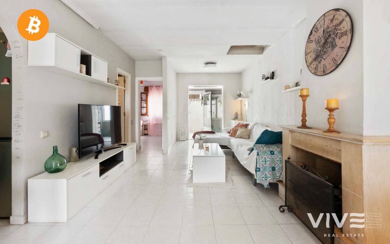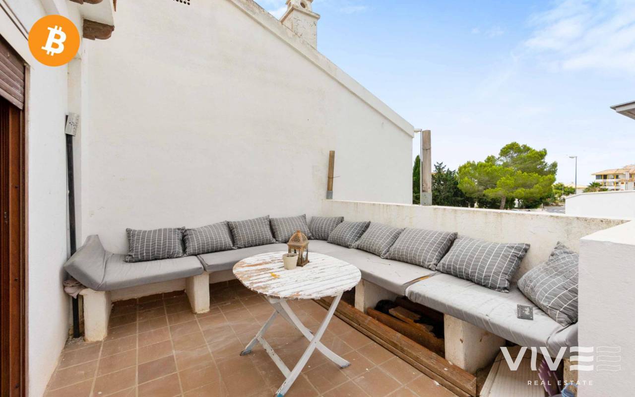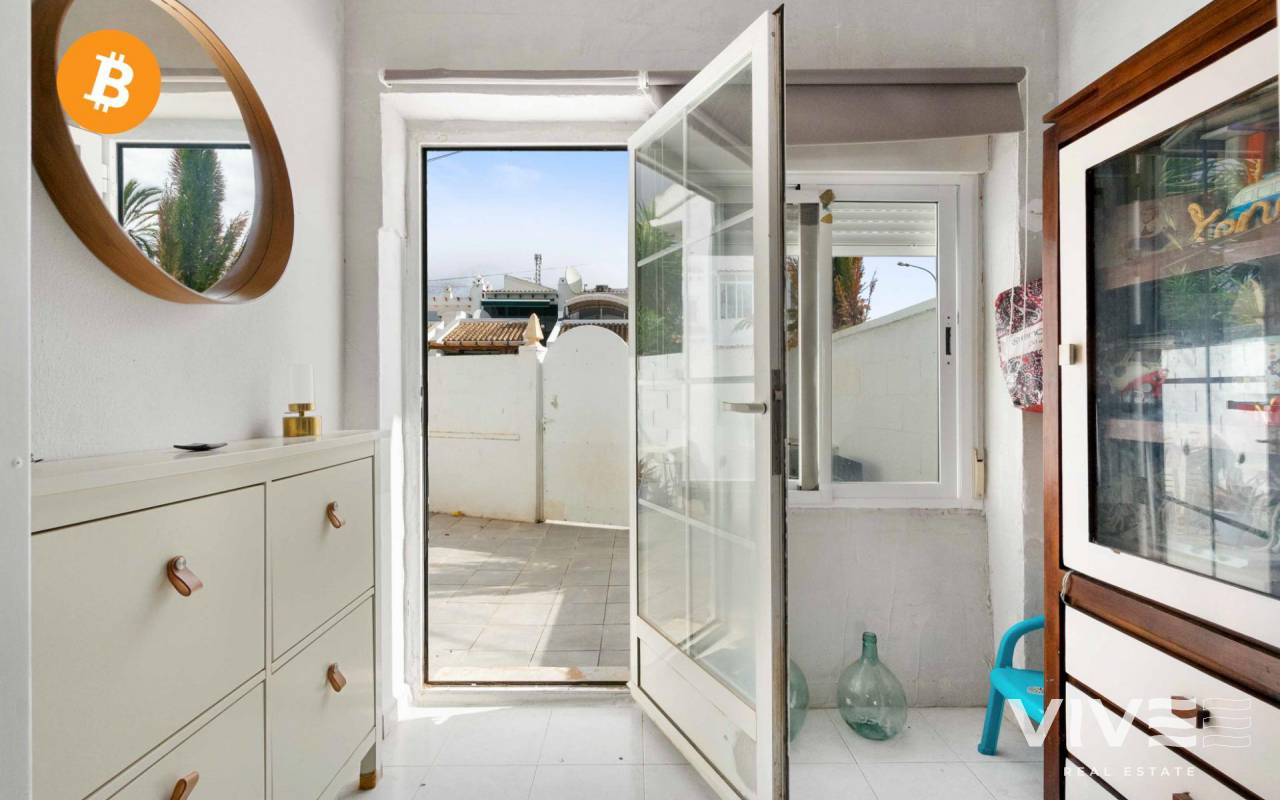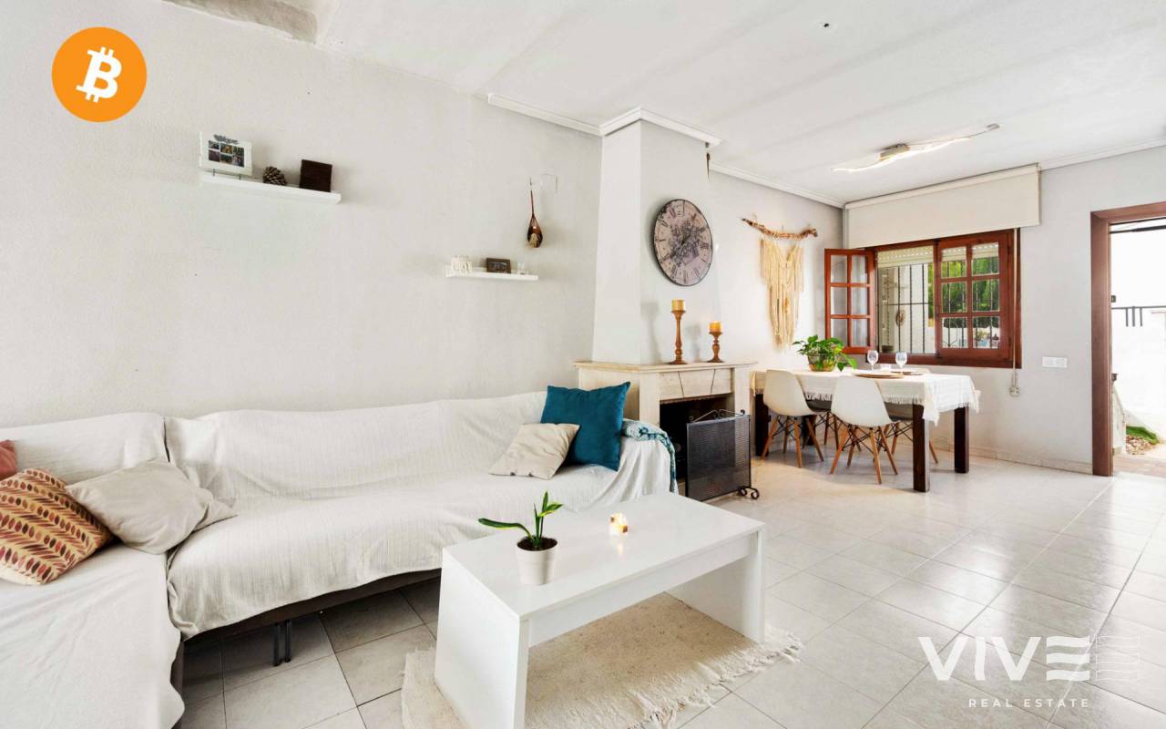 Charming Mediterranean-style townhouse in Villamartin (Orihuela Costa), very close to the Villamartín golf course and Campoamor golf club, perfect for living all year round due to its proximity to all basic services, supermarkets, cafeterias, the La Fuente is located a few meters from the house where you can find a variety of shops, pubs and a variety of restaurants. The house is located in a very quiet urbanization, surrounded by green areas, perfect for walking, it has 67 m2 built on the ground floor, you enter from the street to an incredible 110 m2 garden, perfect for enjoying the outdoors all year round , It is distributed in a living-dining room, a spacious double room, a bathroom and a kitchenette. It has an exit from the living room to the outside porch with another small garden facing south. In the front area of the house with access to the upper floor, you can find a staircase with an entrance to the first floor (it does not appear in the deed), a spacious room with a bathroom, which can be used as an apartment attached to the house, perfect for have in the event that you want more privacy when having visitors or simply take advantage of it with a loft. It is a house with many possibilities, both to live all year round and also as a vacation investment. It does not have a community pool, so the community is very economical all year round.