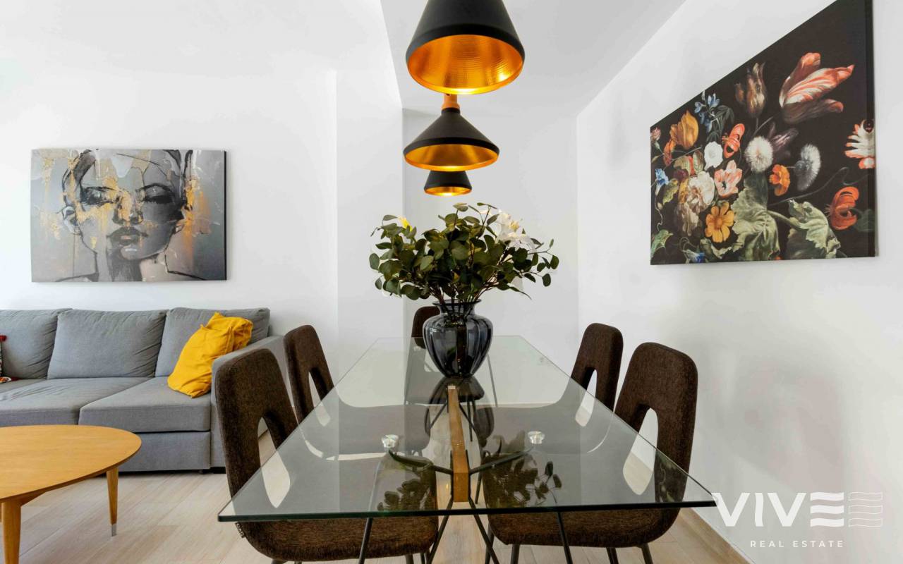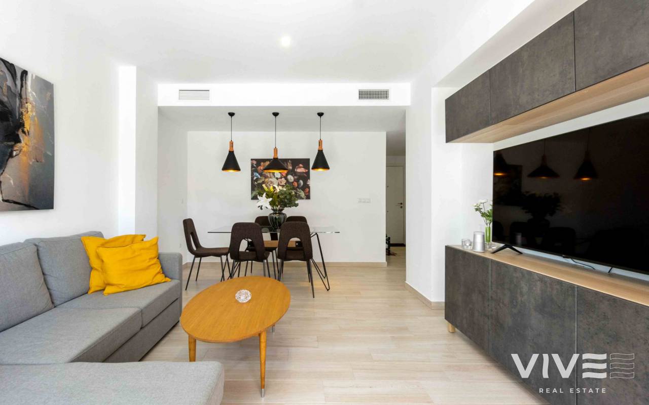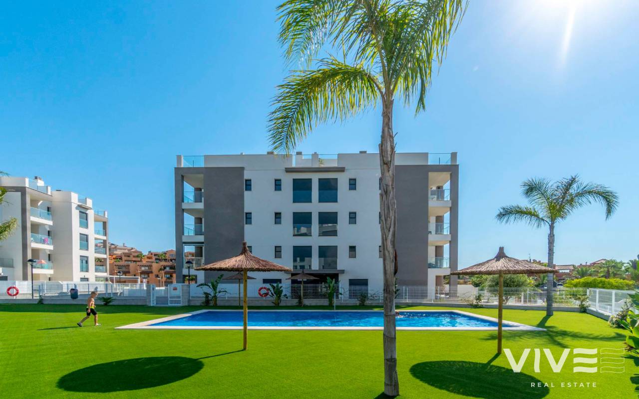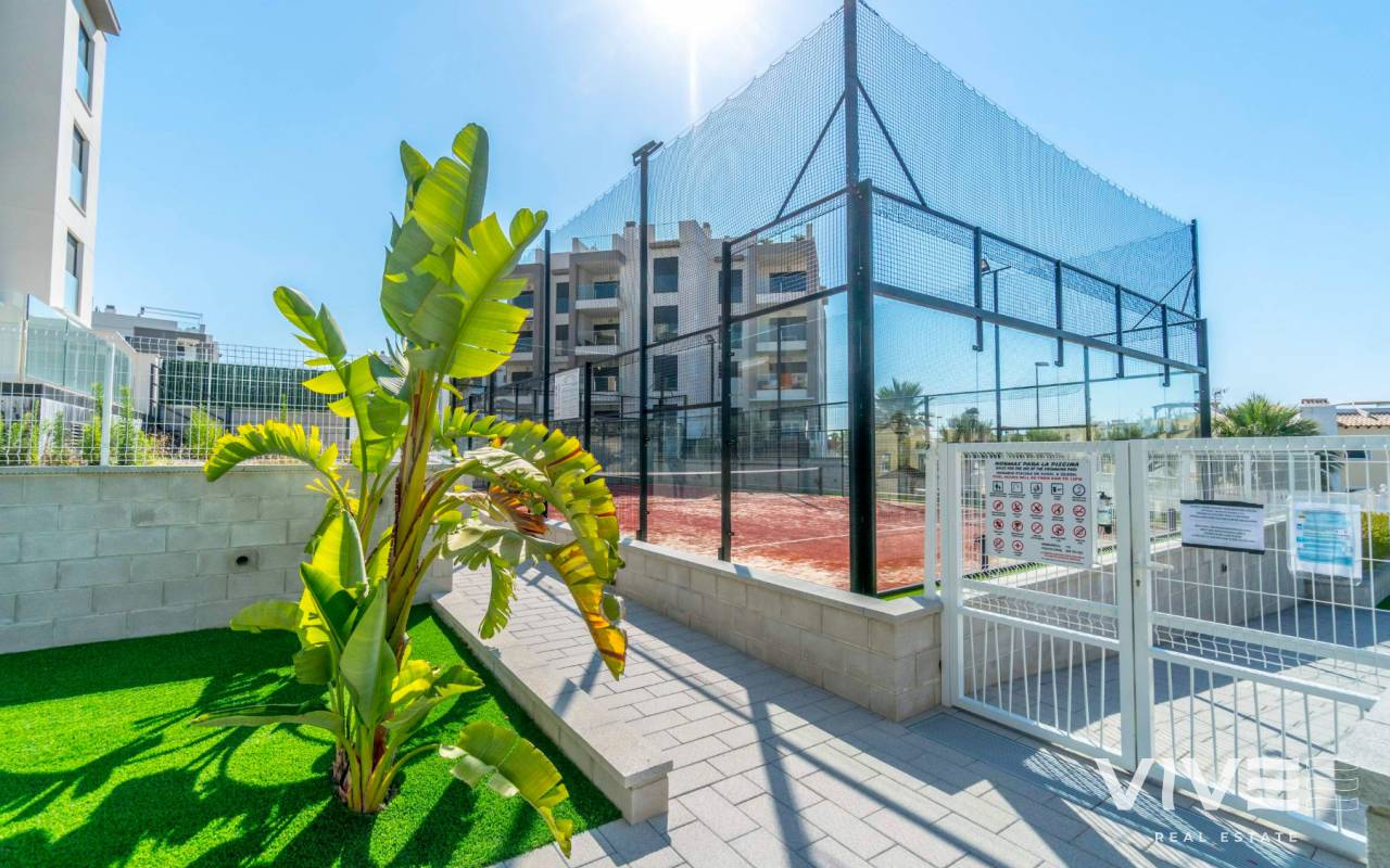 Fantastic 2 bedroom corner ground floor apartment located in the newly constructed residential complex of Valentino Golf I in Villamartin, just a short walk to the famous Villamartin Plaza & golf course. The property is in excellent condition. The apartment boasts a large corner garden of 83 m2 with artificial grass and a terrace of 53 m2. The apartment has fantastic location just in front of the swimming pool area. You have a door from the garden to the pool area. This apartment is perfect for a family with children’s. The living accommodation of this beautiful apartment comprises of a spacious lounge-dining area with modern open kitchen, 2 bedrooms with fitted wardrobes, and a family bathroom. The master bedroom benefits from its own en-suite bathroom with walk-in shower. Both bedrooms have direct access out to he fantastic garden. The apartment was built only 3 years ago, and has been well cared for by the current (and only) owners. There is also energy efficient LED lighting throughout the apartment. Underfloor heating in both bathrooms. The apartment is sold partially furnished with air-conditioning throughout. The apartment is also sold with a private underground parking space included in the price. Valentino Golf offers wonderful facilities including the use of 3 communal pools, paddle court and a children's play area, all situated in a secure gated community. Located less than a 10 minutes walk to the famous Villamartin Plaza and golf course, which hosts a variety of bars, restaurants, shops, and a supermarket. There is also a local bus stop nearby with routes towards the beaches and the famous Zenia Boulevard shopping mall, which are less than an 8 minutes drive away.